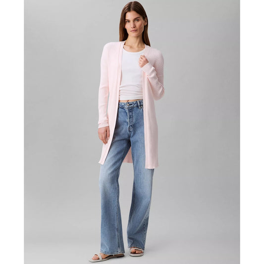 Calvin Klein Women's Cotton Ribbed Open-Front Duster Cardigan in Pearl Pink