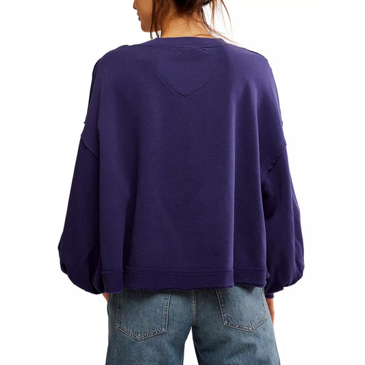 Free People Women's Trish Cotton Drop-Shoulder Sweatshirt in Navy