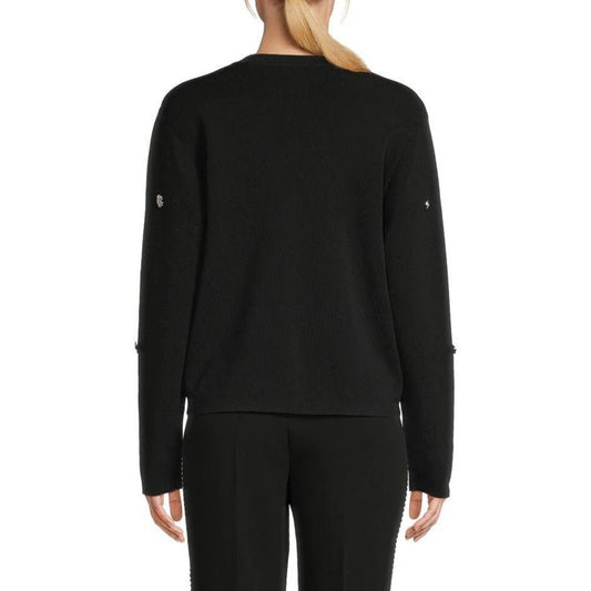 Karl Lagerfeld Paris Women’s Black Floral Embellished Open Cardigan