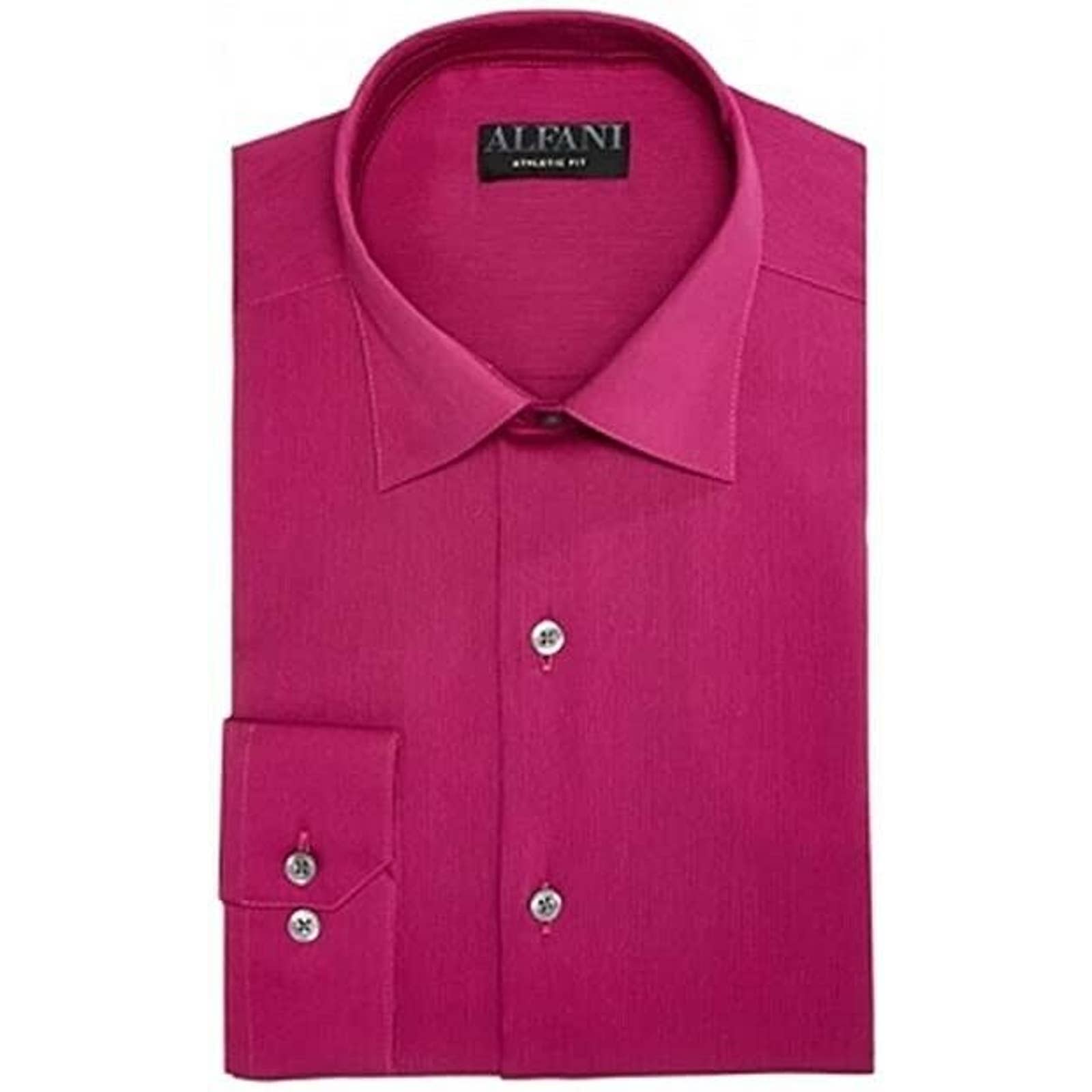 ALFANI, Men's Pinstriped Fuchsia Fashion Button Up Shirt, Slim Fit