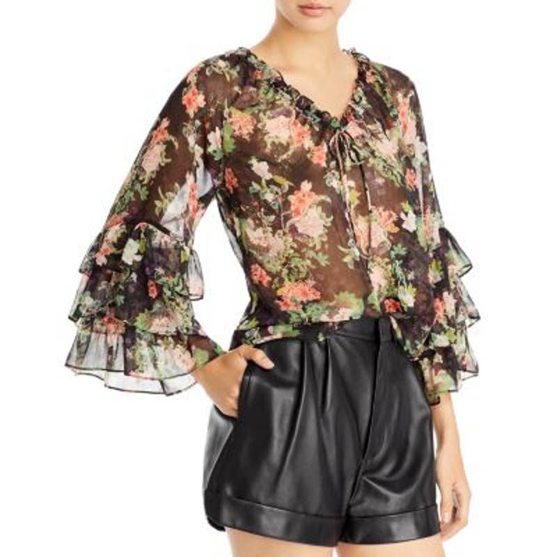 ALICE + OLIVIA Ladies Semi Sheer Ruffle SLeeve Floral Print "Kallie" Blouse