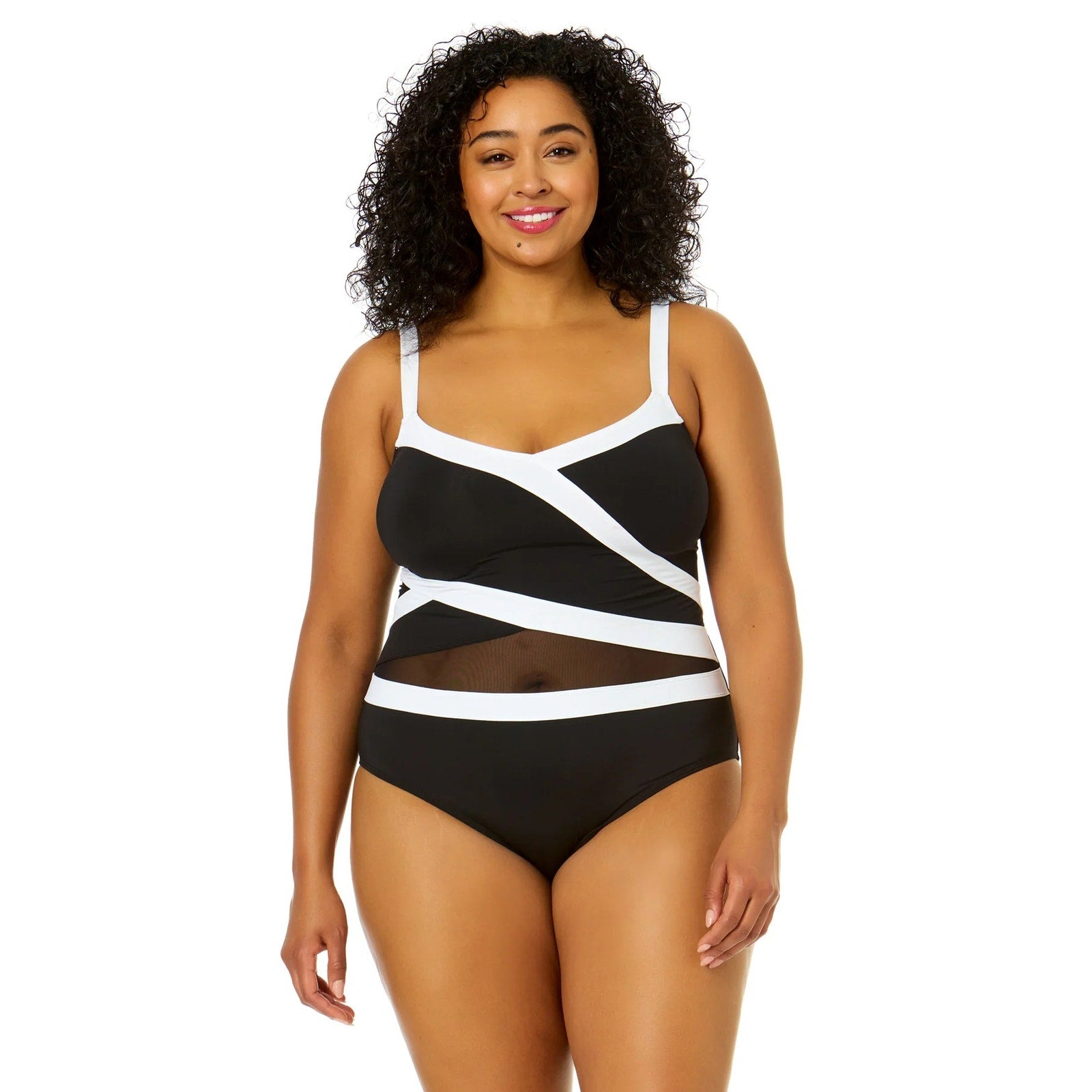 Anne Cole Women's Plus Size Mesh Around Mesh Insert One Piece Swimsuit