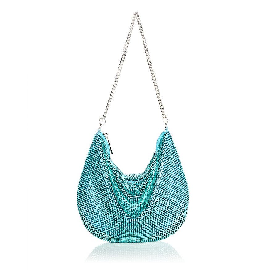 AQUA Ellie2 Crystal Mesh Shoulder Bag Aqua Blue