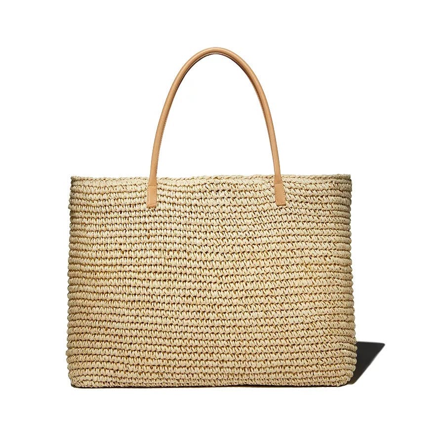AQUA Extra-Large Woven Tote Bag In Natural Tan