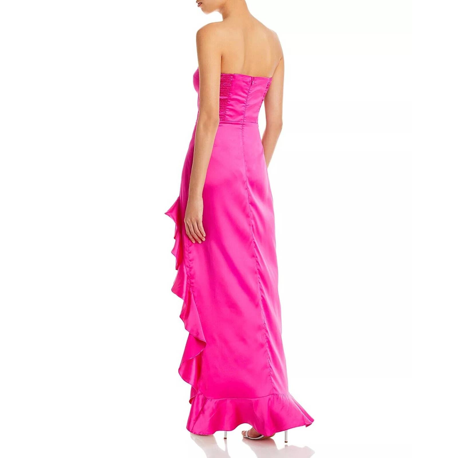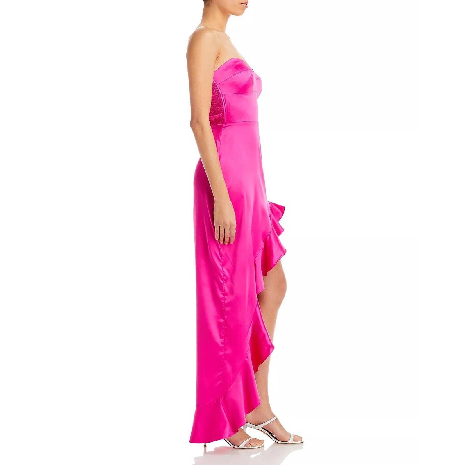 AQUA Ladies Hot Pink Strapless Ruffle Maxi Dress, High Slit in Leg
