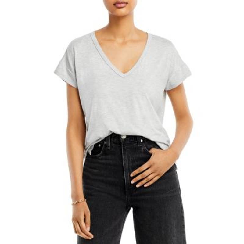 AQUA Ladies Light Gray Deep V-Neck Tee Shirt