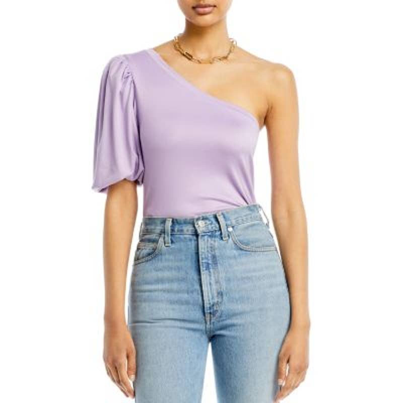 AQUA Ladies Purple One Shoulder Puff Sleeve Top