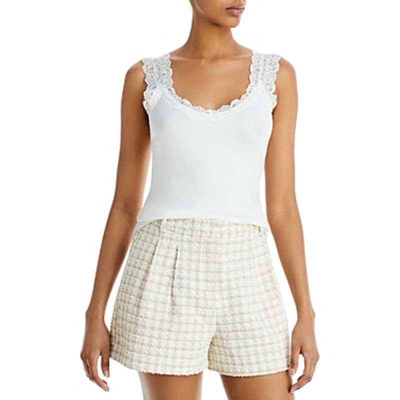 AQUA Ladies White Knit Lace Trim Cami Tank Top