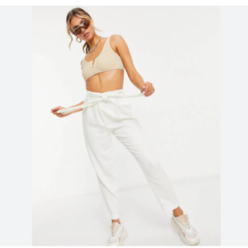 AQUA Ladies White Linen Tapered Pants w/ Tie Belt