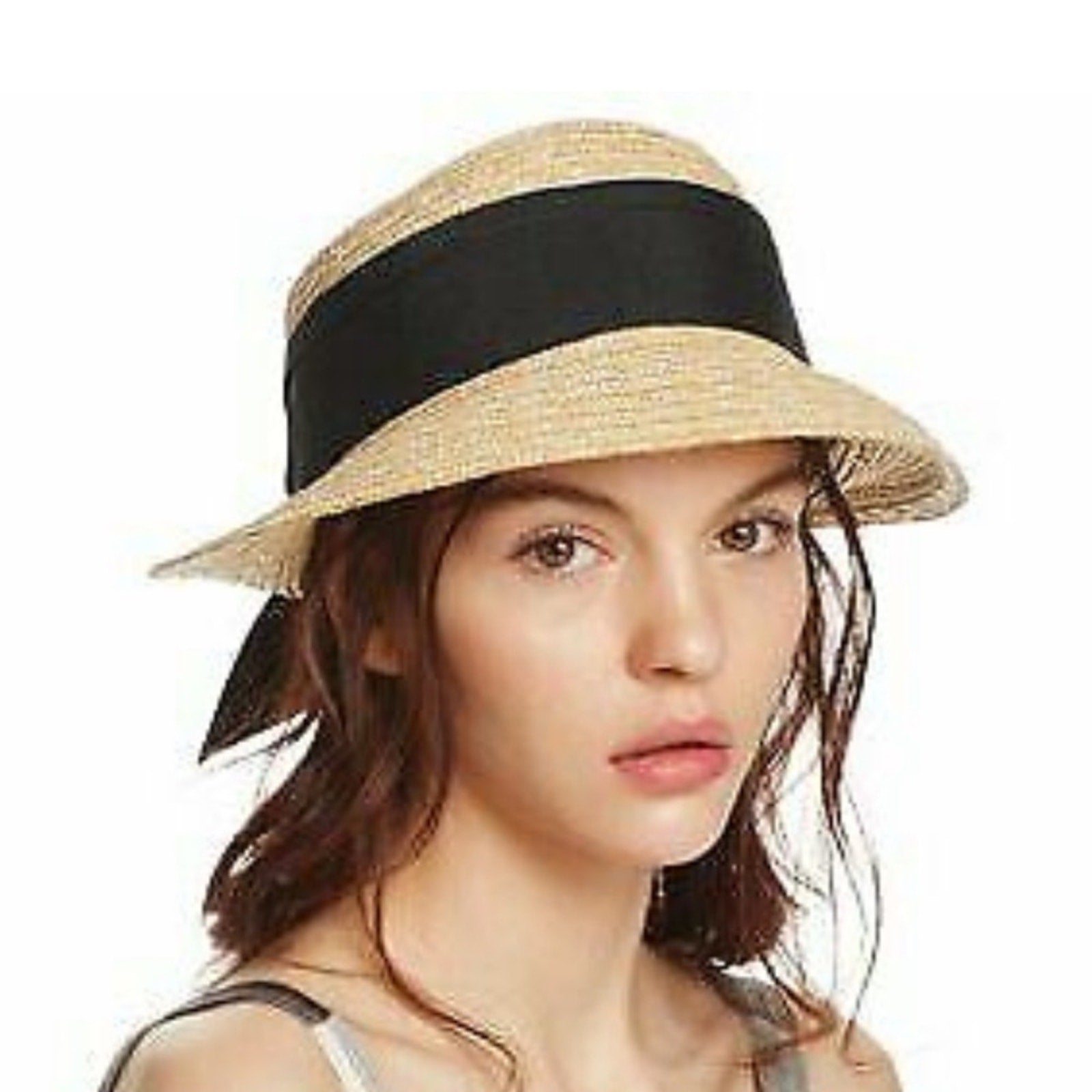 AQUA Natural Tan Straw Sunhat w/ Black Band & Bow