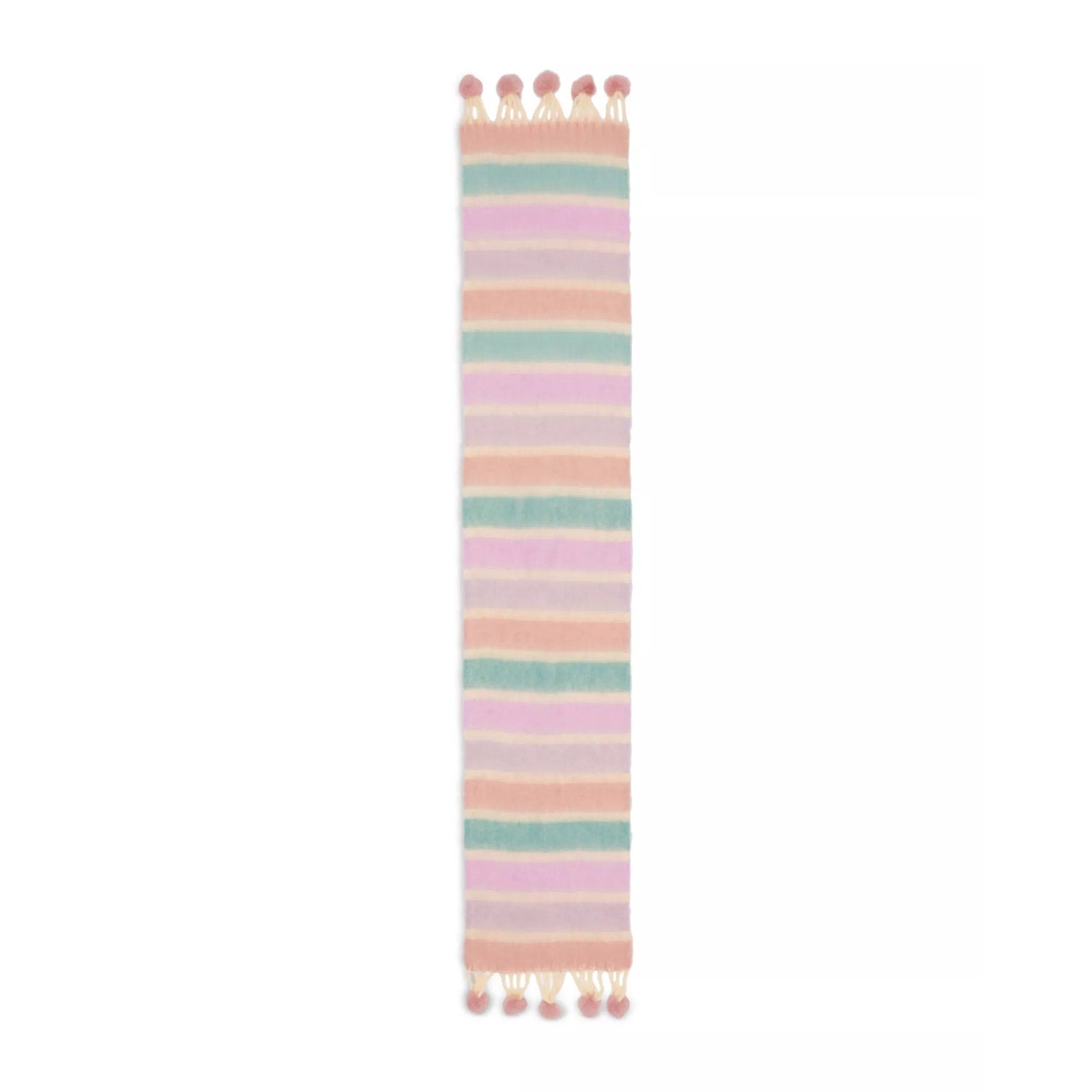 AQUA Pom Pom Tassel Scarf Pink Multi Stripe