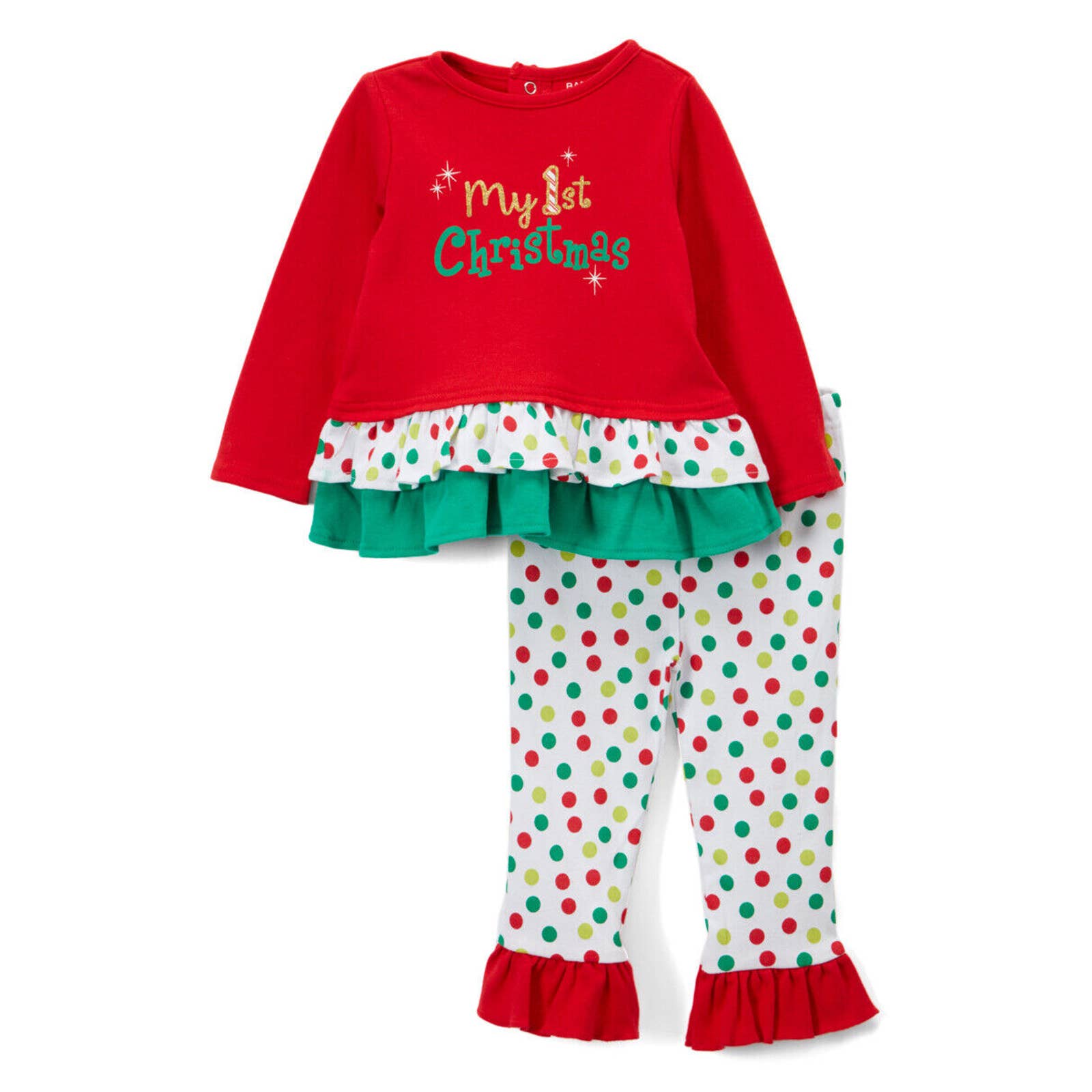 BABY ESSENTIALS Girl's My First Christmas Tunic Polka Dot Legging Set, Red