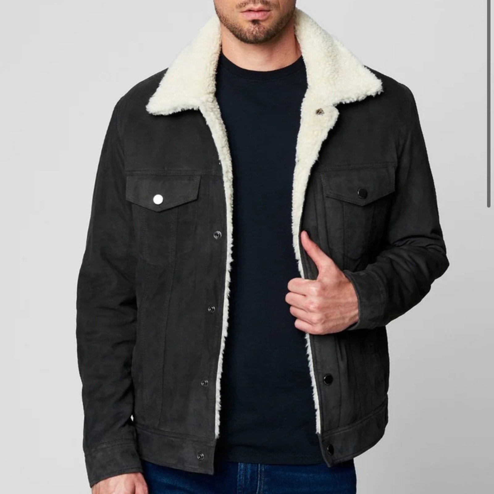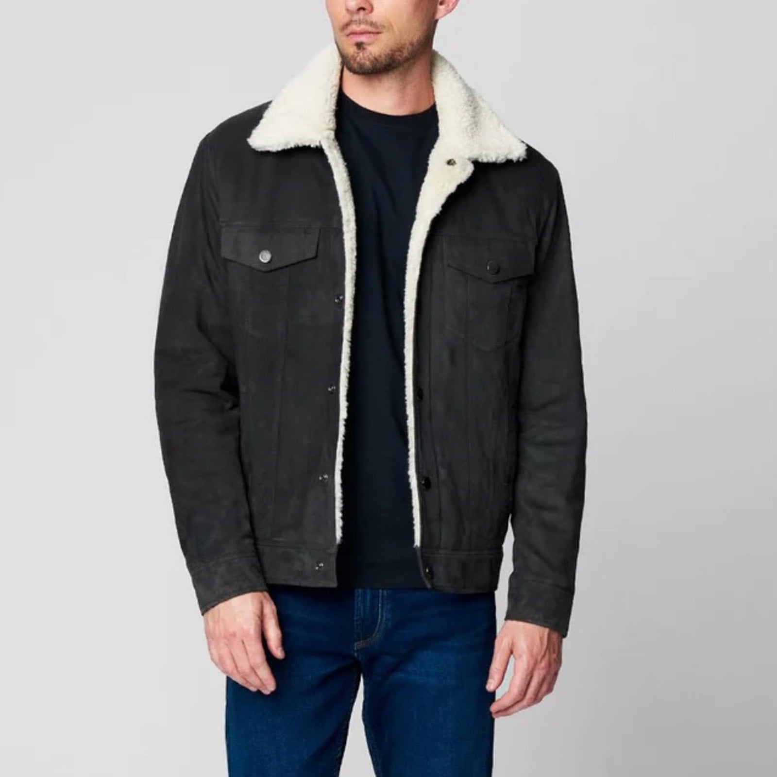 Blank NYC Men’s Black Suede Jacket w/ Cream Sherpa Lining, “Afternoon Delight”