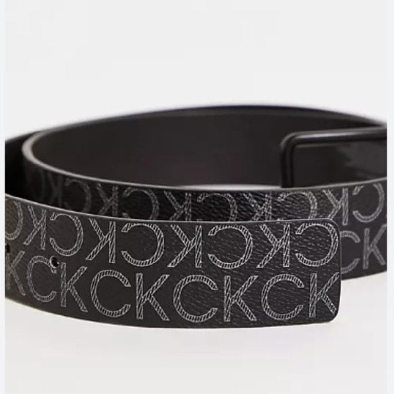 Calvin Klein Ladies Black & Gray Leather Monogram Belt
