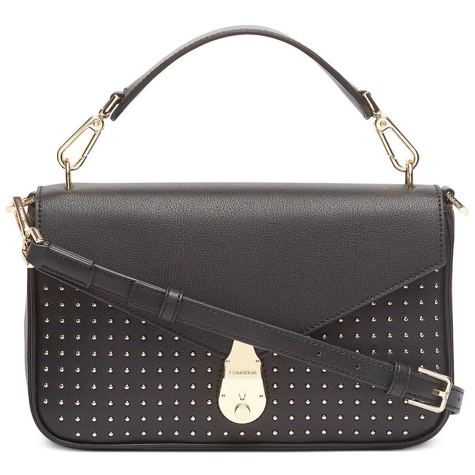 CALVIN KLEIN Locked STUDDED Crossbody Bag BLACK LEATHER