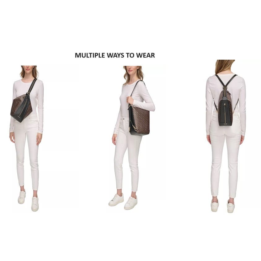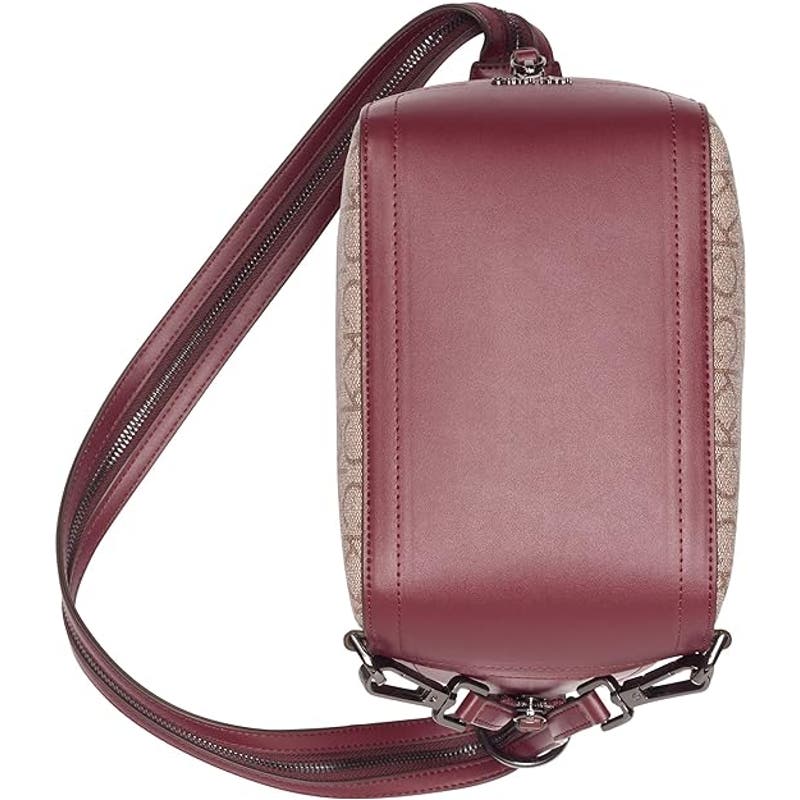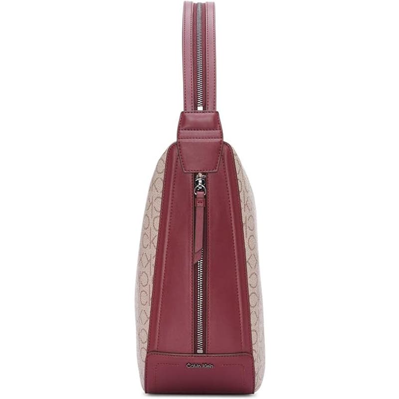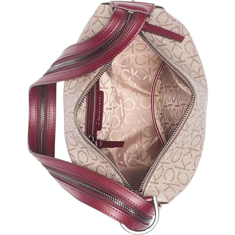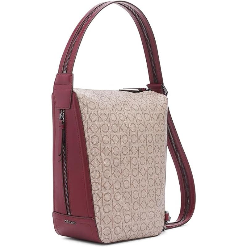 CALVIN KLEIN Medium Moss Signature Convertible Sling Bag In Rouge Red & Tan