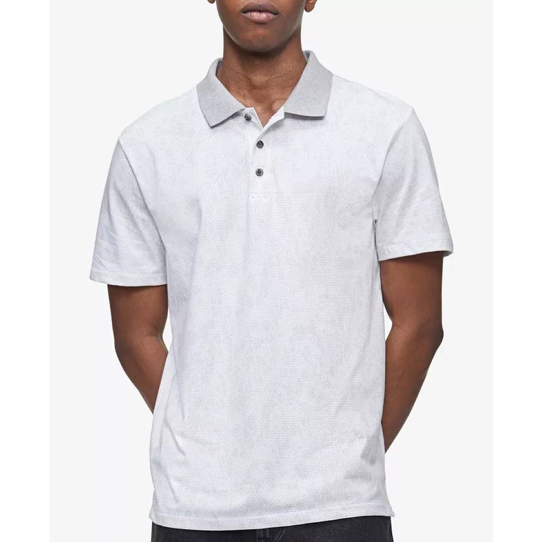 Calvin Klein Men's Brilliant White Monogram Logo Printed Polo Shirt