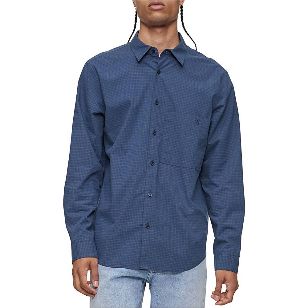 Calvin Klein Men's Navy Blue "Ink" Checkered Button Down Shirt