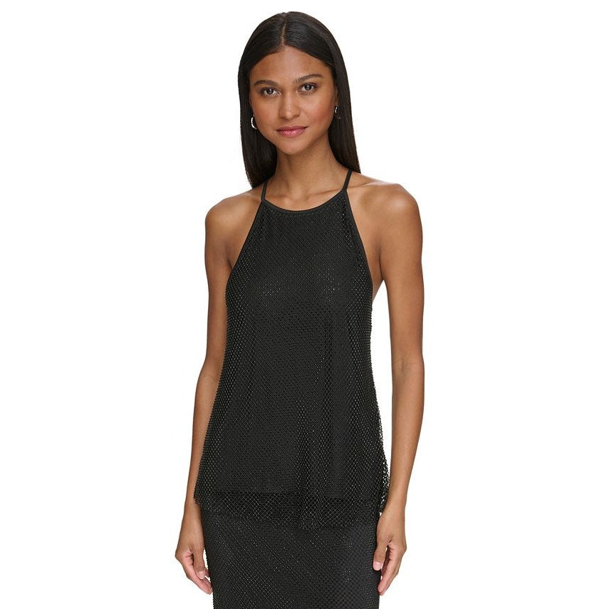 Calvin Klein Women's Black Mesh Crystal Overlay Sleeveless Top