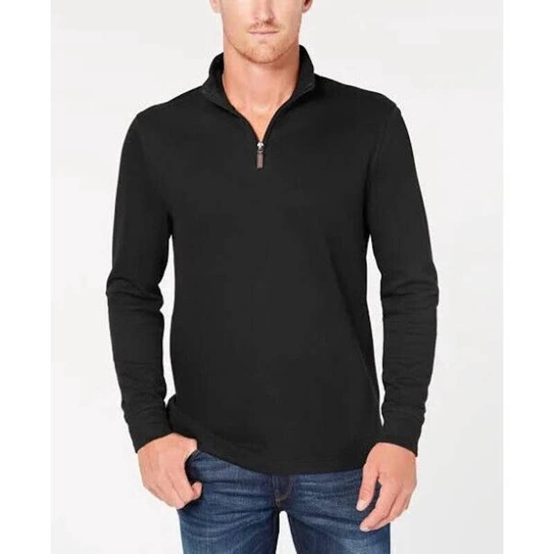Club Room Men's Cable Knit Quarter Zip Pullover Sweater, Deep Black
