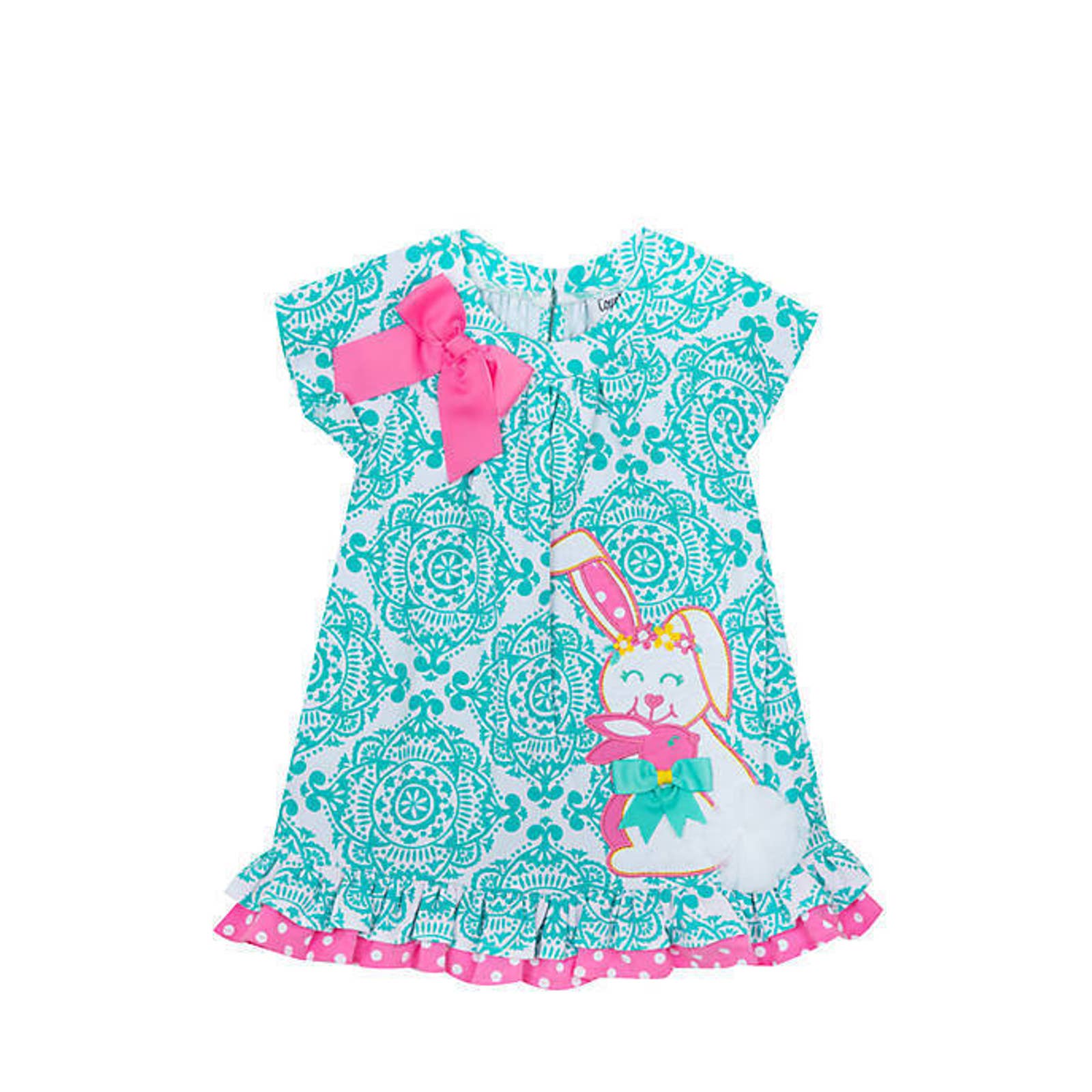 COUNTING DAISIES Girl's Easter Bunny Dress, Aqua Pink White