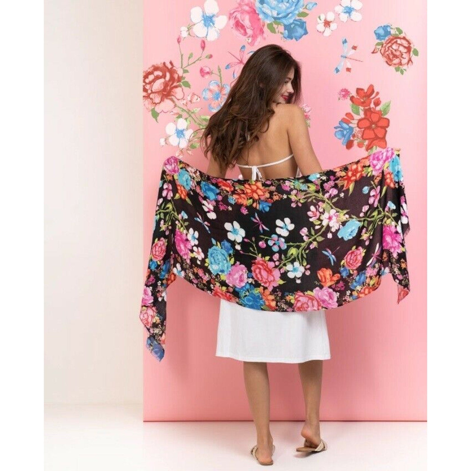 INC International Concepts Dragonfly Garden Soft Wrap Pashmina Black