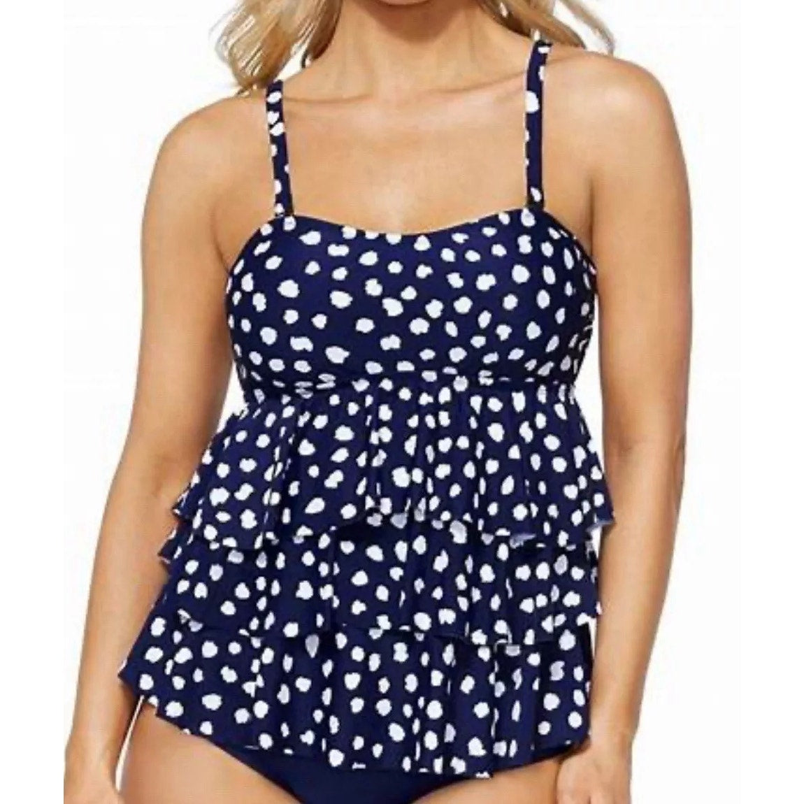 Island Escape Women's Triple Tiered Tankini Top In Navy White