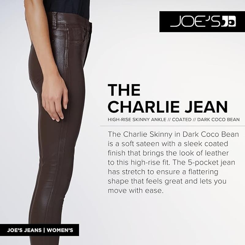 JOE'S JEANS THE CHARLIE HIGH RISE SKINNY ANKLE COATED DARK COCO BEAN