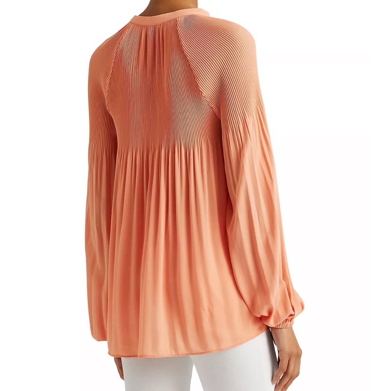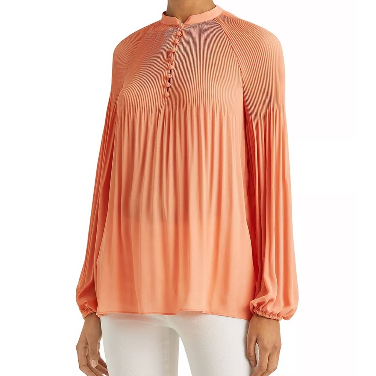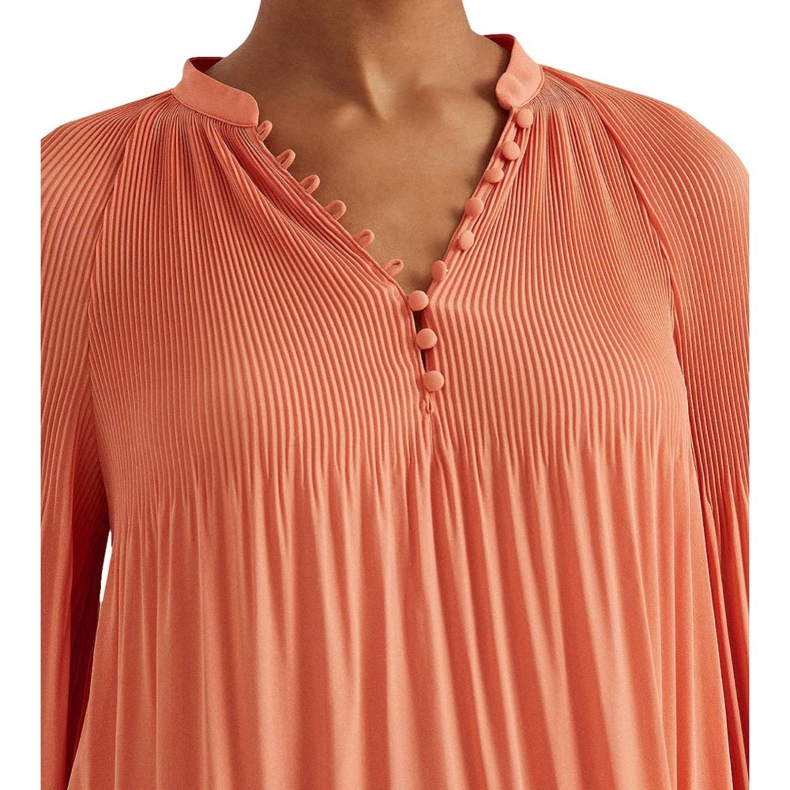 Lauren Ralph Lauren Bright Orange Blouse w/ Pleated Accents & Button-Up Front!!