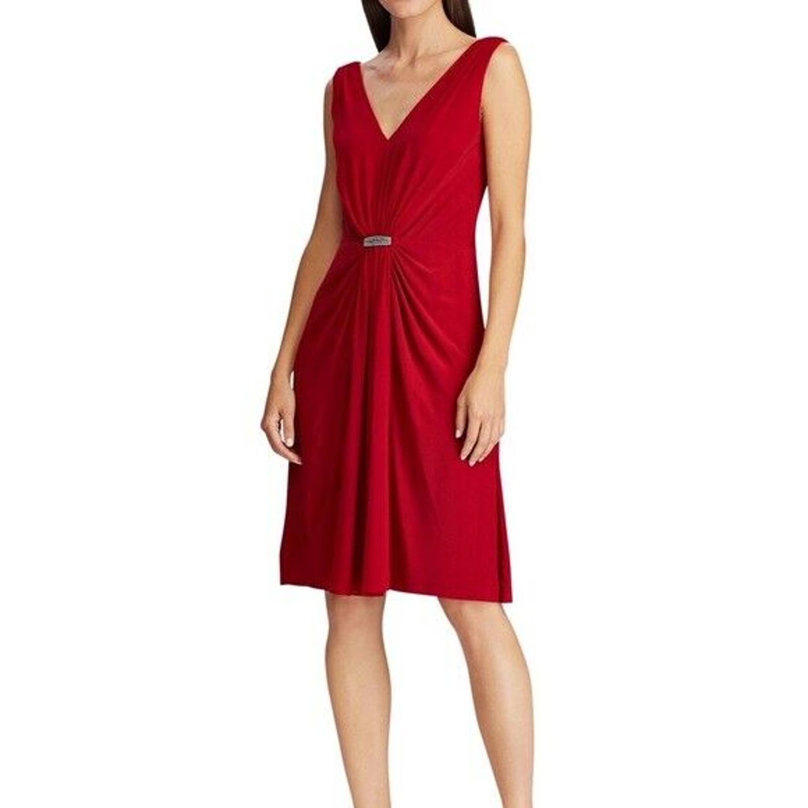 LAUREN RALPH LAUREN LADIES VAWLISA SLEEVELESS COCKTAIL DRESS, RED
