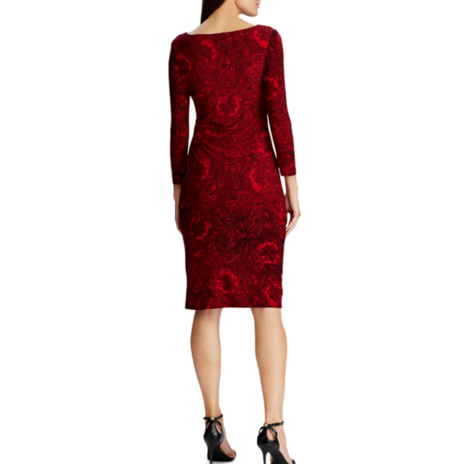 LAUREN RALPH LAUREN LADIES VICTORINA ABSTRACT PRINT JERSEY DRESS, RED
