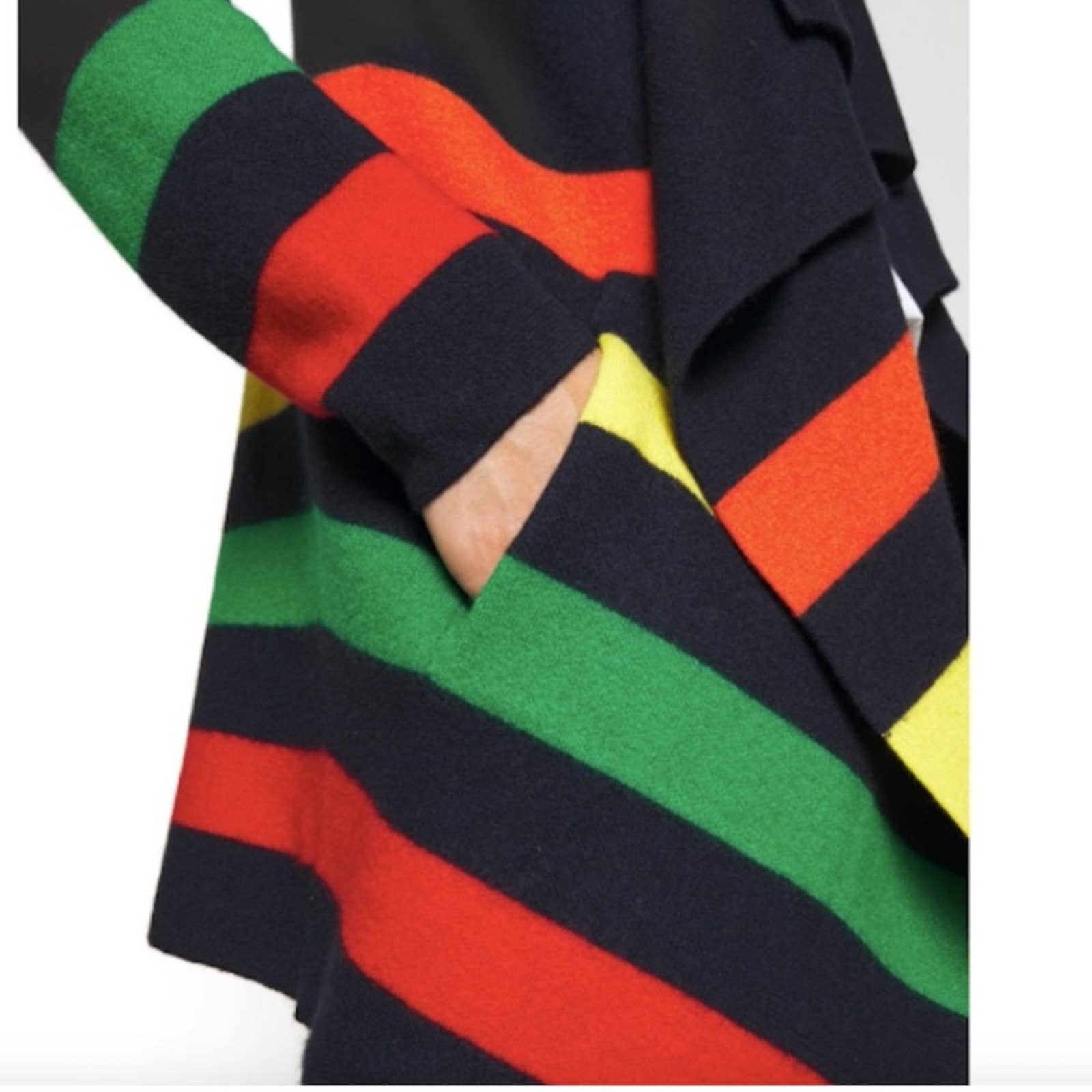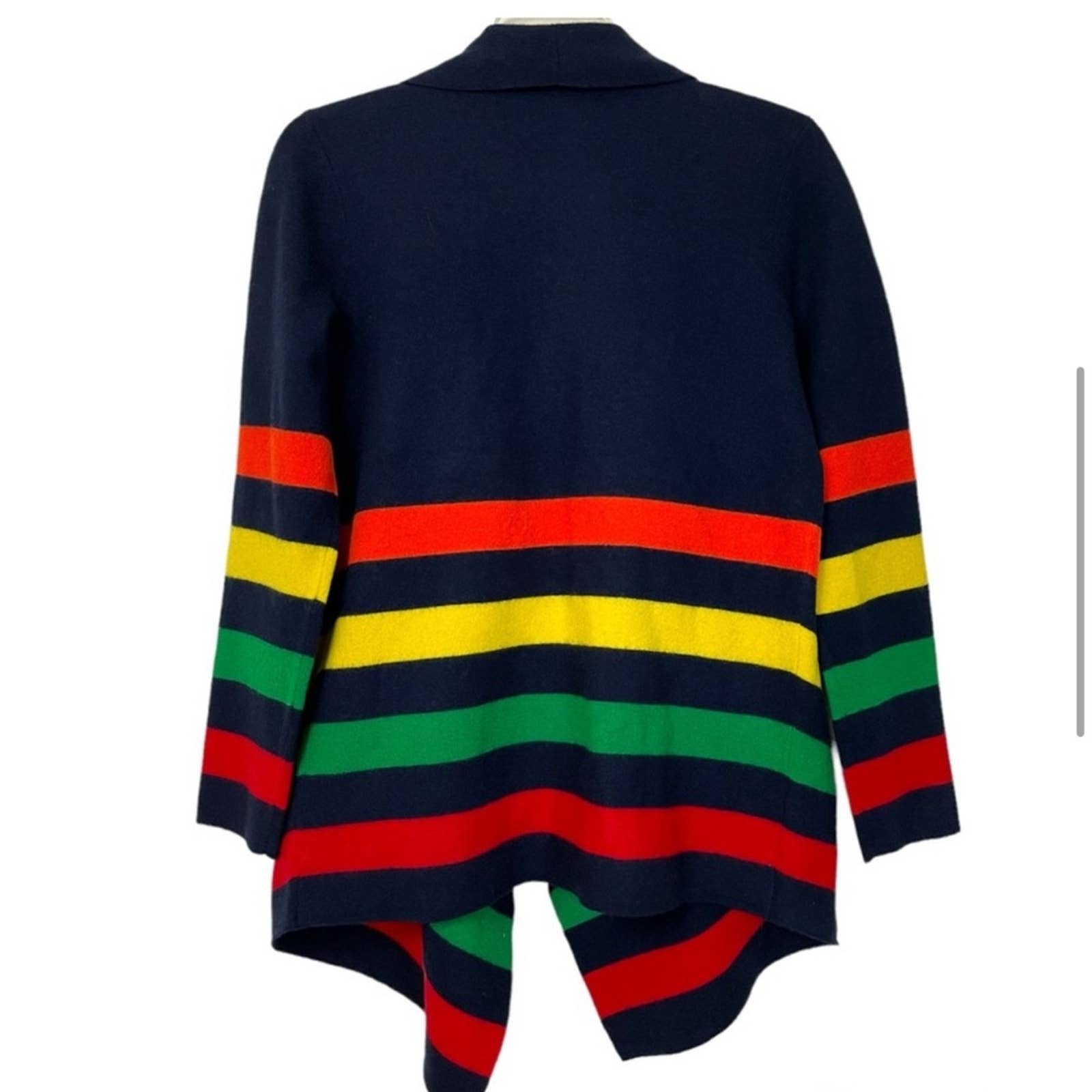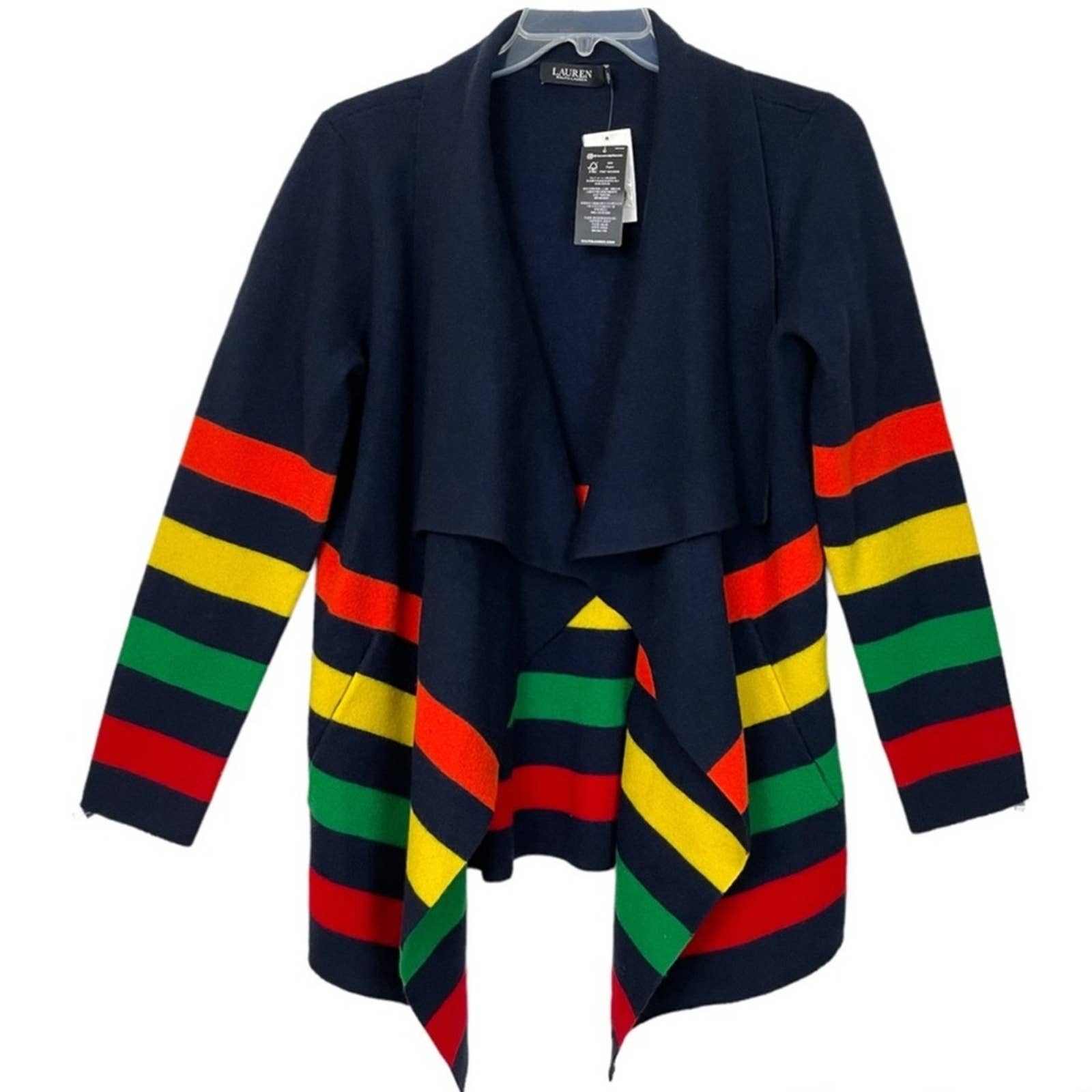 Lauren Ralph Lauren Navy Blue Knit Cardigan w/ Rainbow Stripes, Pockets