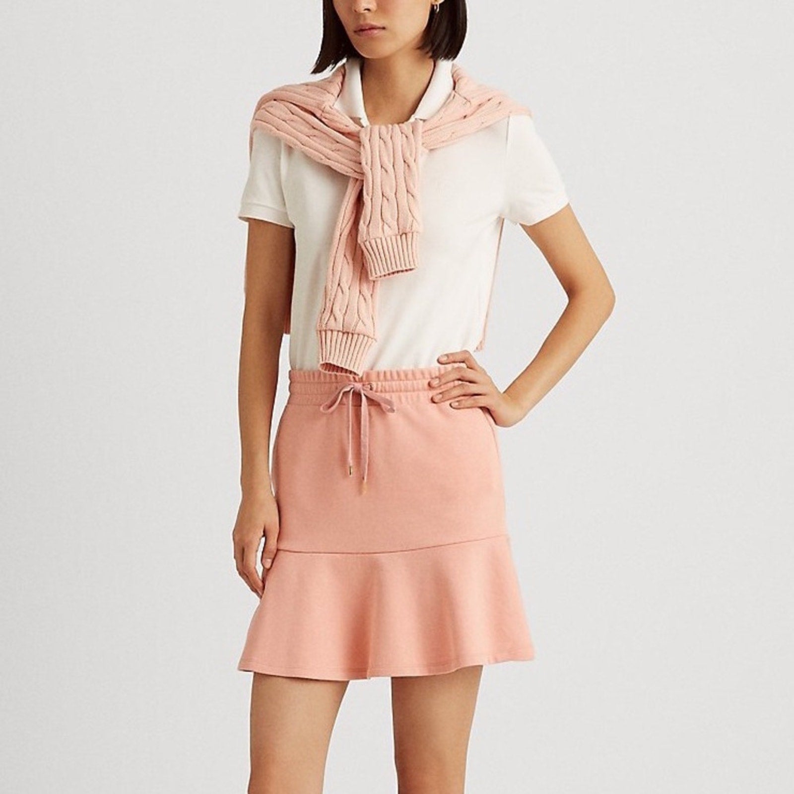 Lauren Ralph Lauren Pink Rose Tan Skirt, Drawstring, Fit & Flare