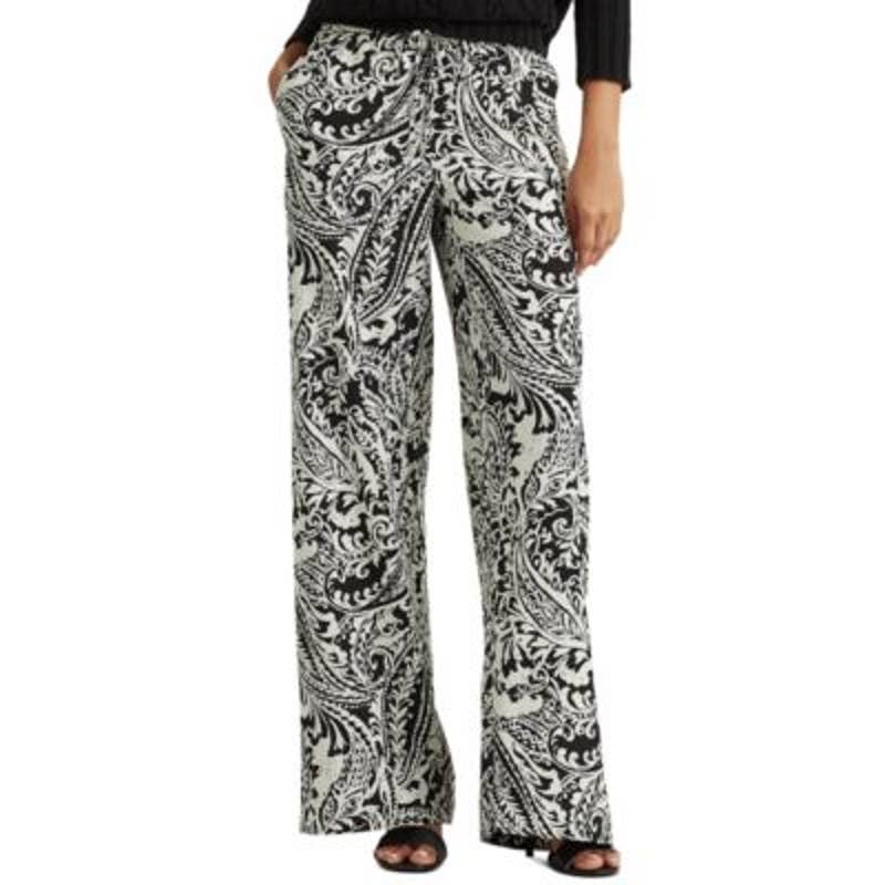 Lauren Ralph Lauren Women's Black & Cream Crepe Paisley Print Wide Leg Pants