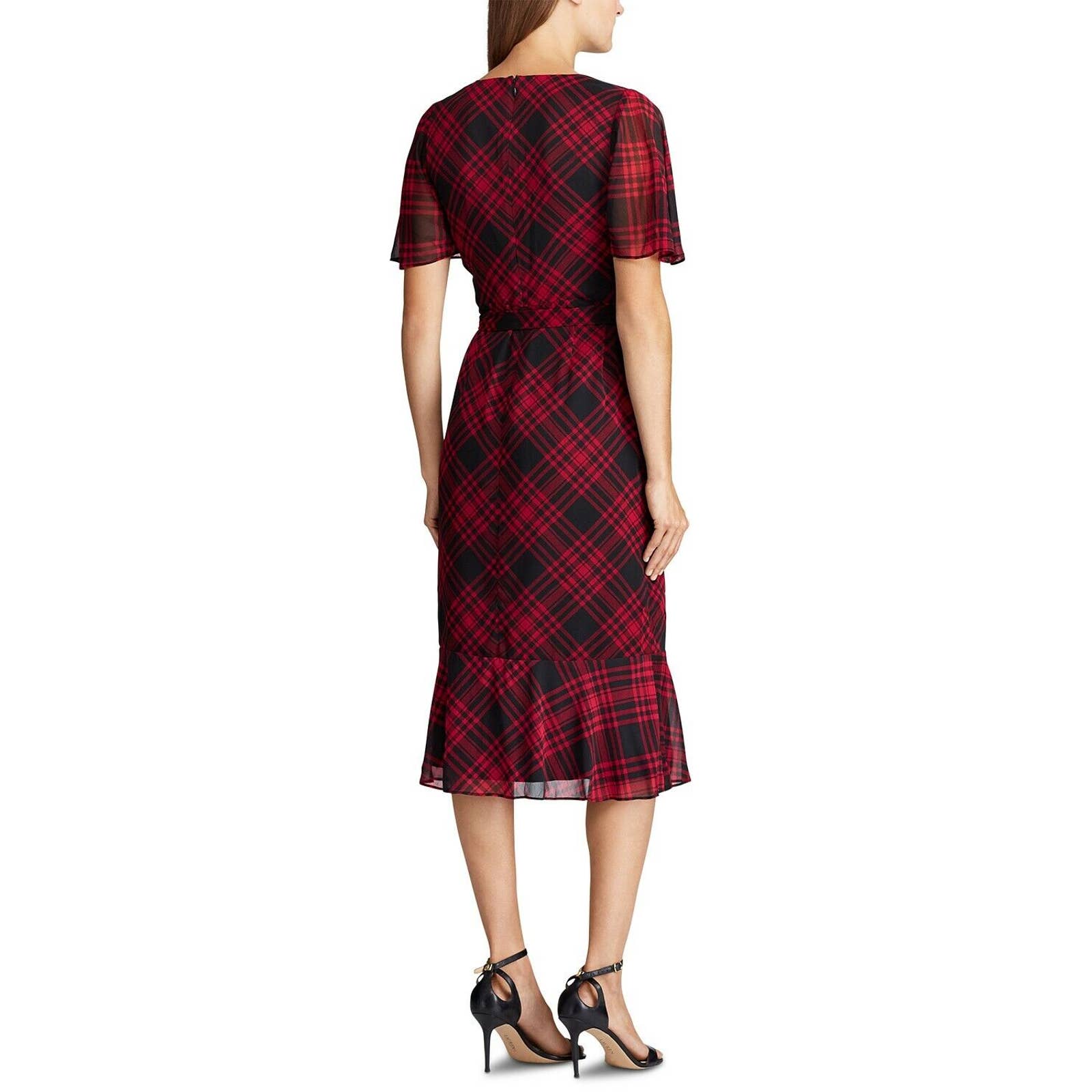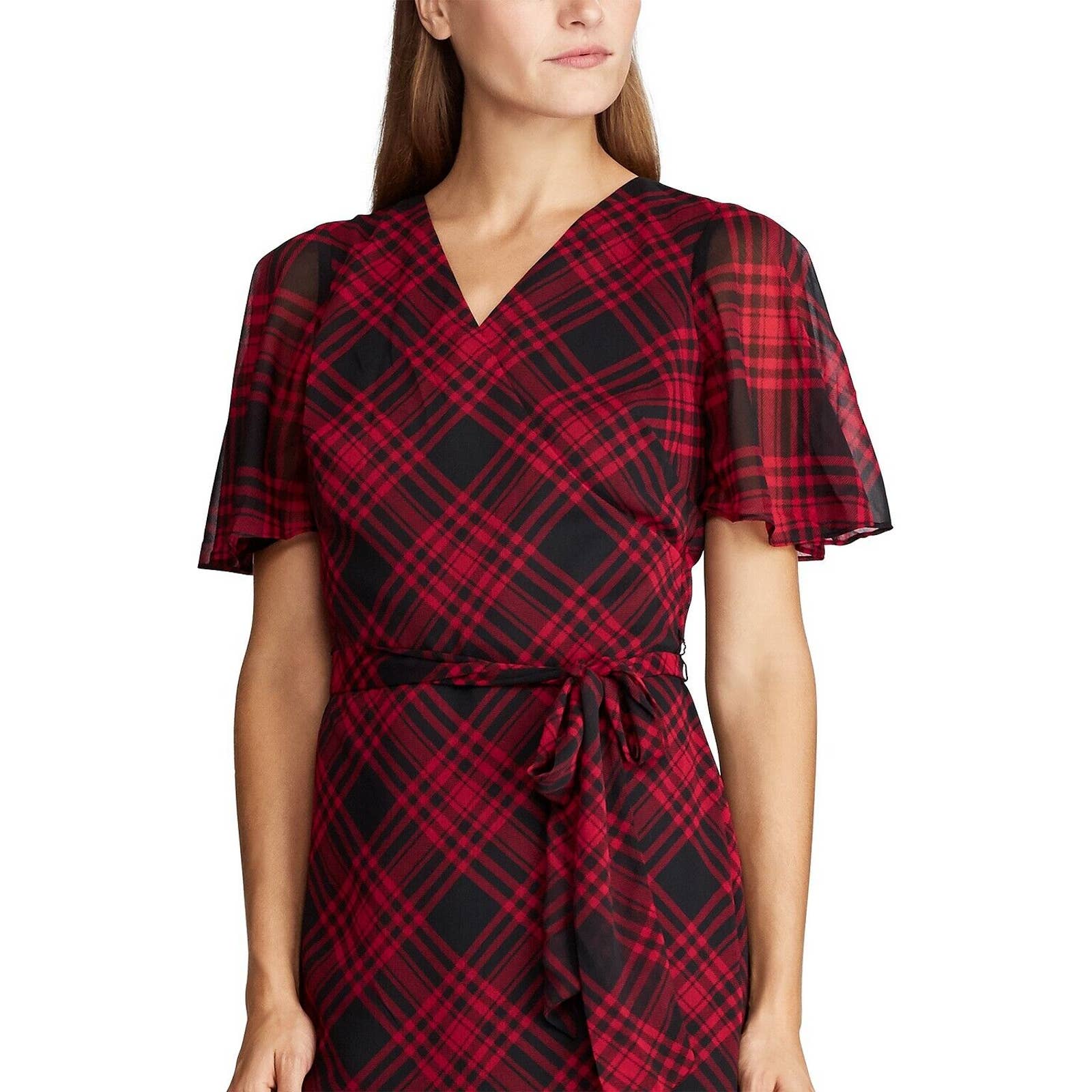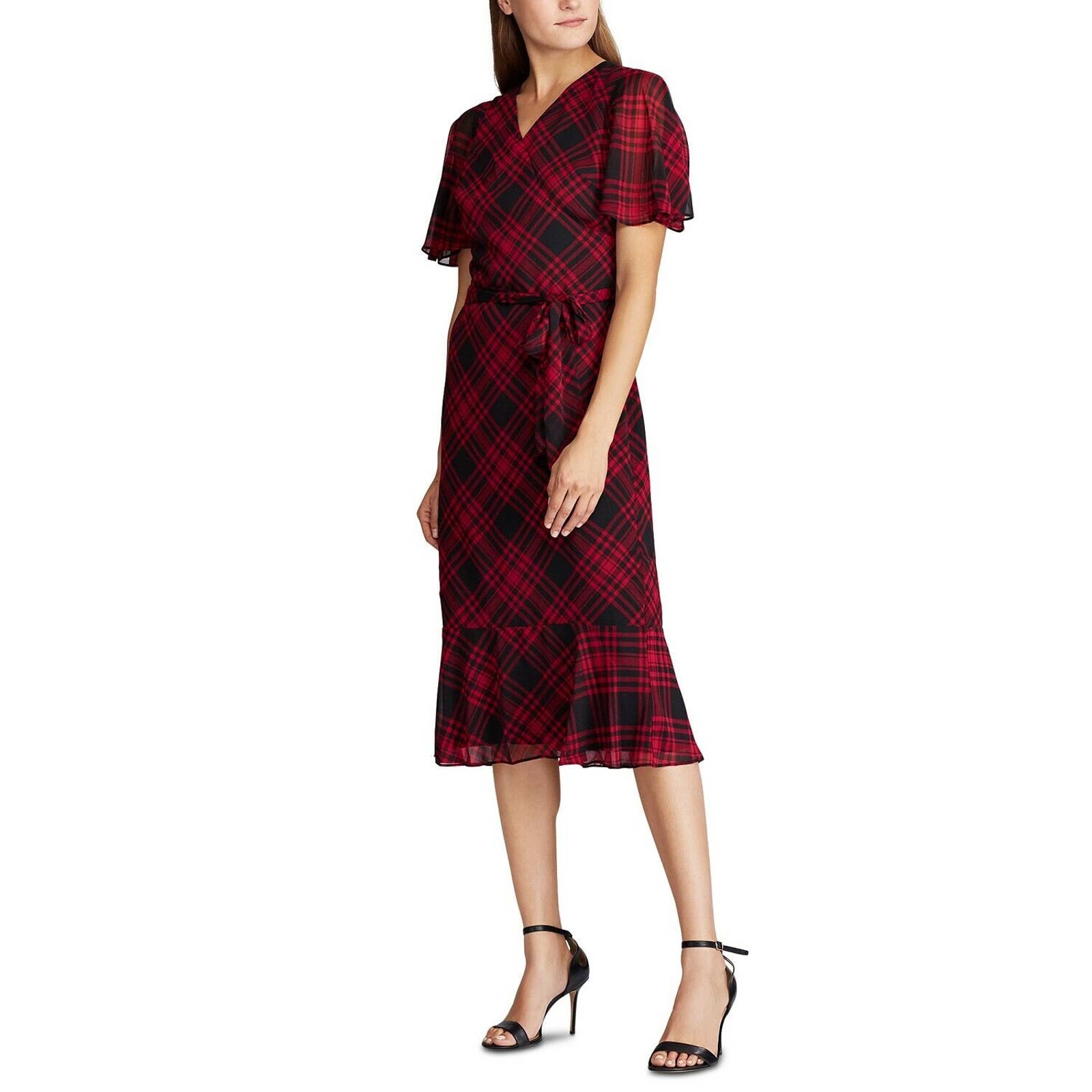 LAUREN RALPH LAUREN WOMEN'S OLEANDER PLAID DRESS, RED BLACK
