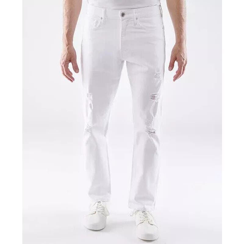 LAZER Men's Slim-Fit Stretch Jeans White Denim
