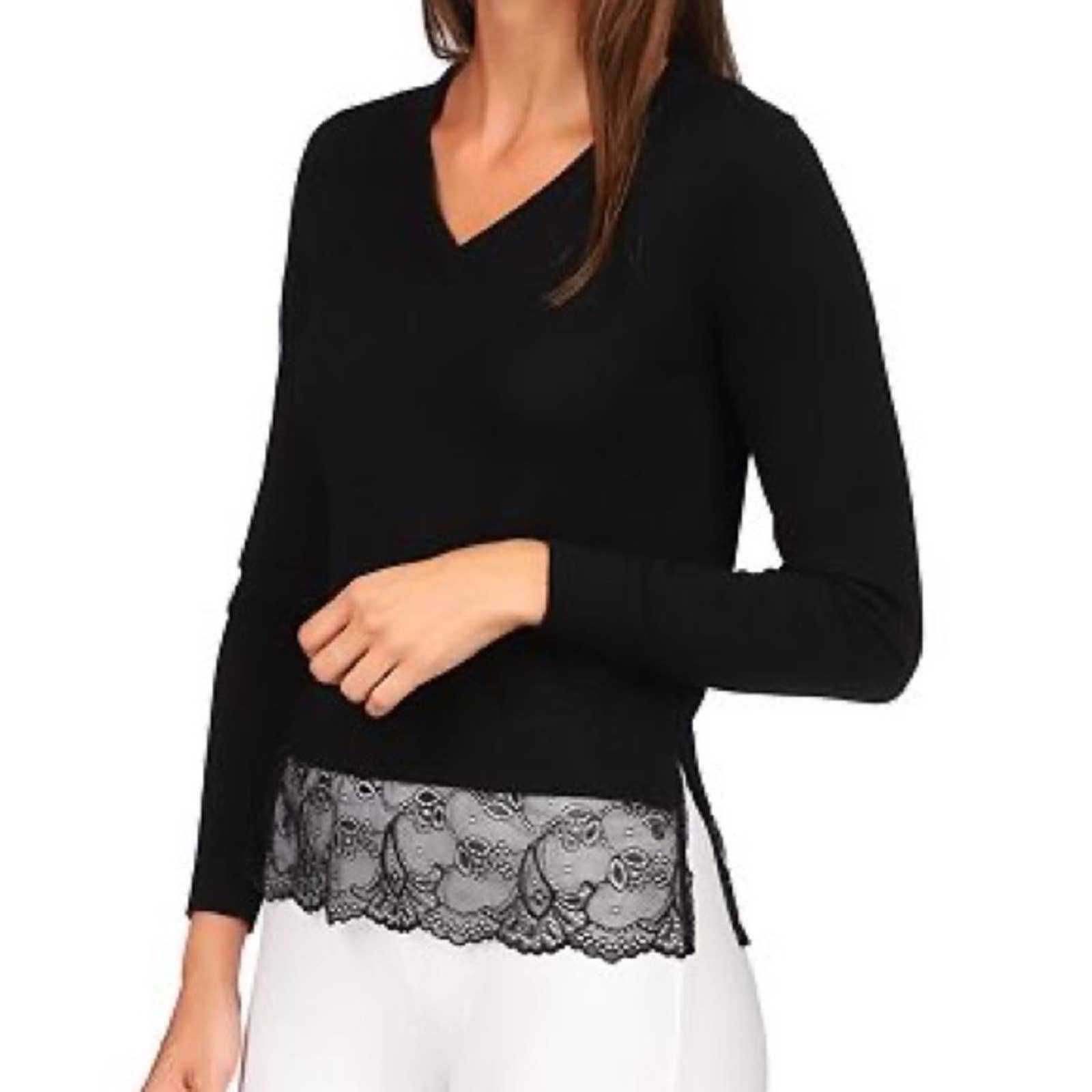 Michael Kors Black V-Neck Sweater w/ Lace Accents on Hem