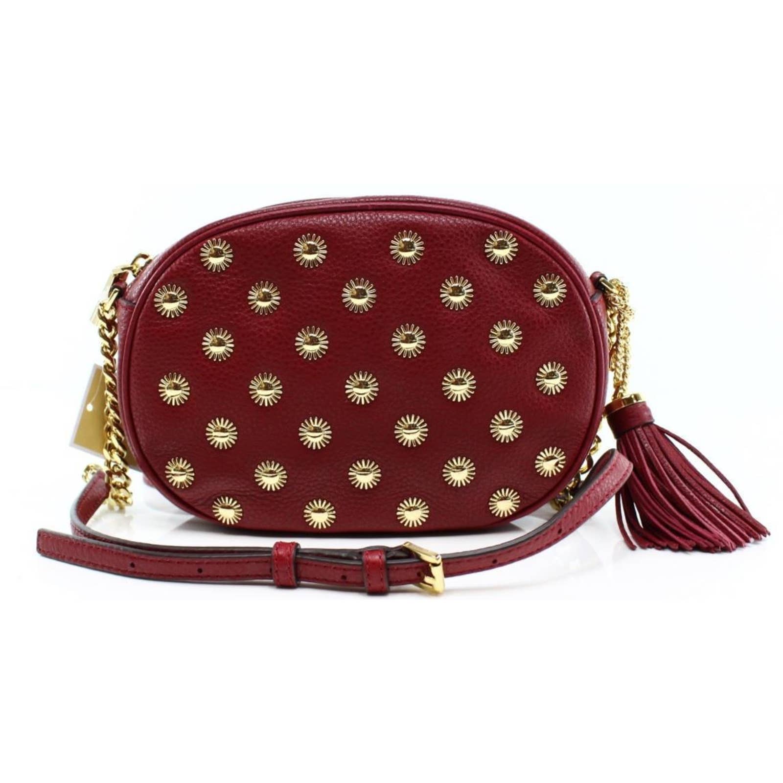 MICHAEL KORS, "Ginny" Studded Medium Messenger, Cherry, Leather