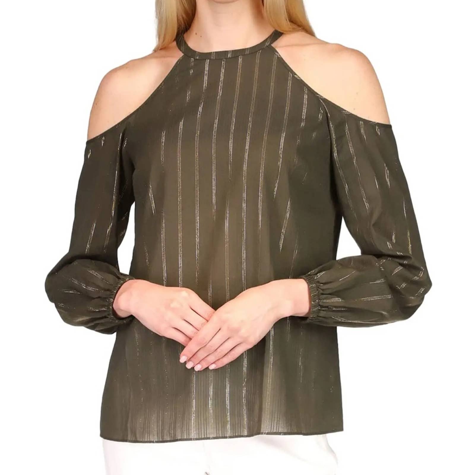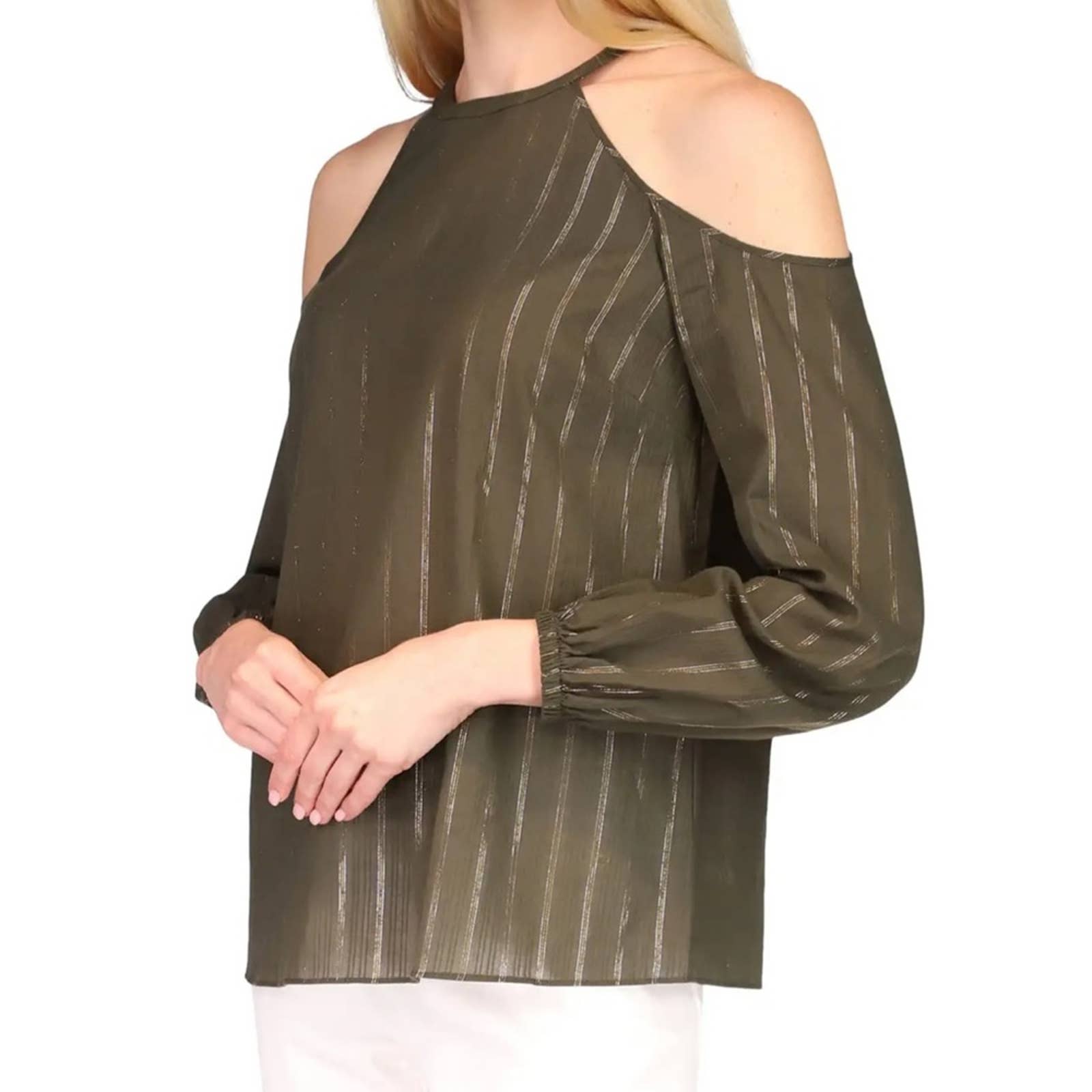 Michael Kors Ivy Green Cold Shoulder Blouse w/ Gold & Silver Glitter Accents