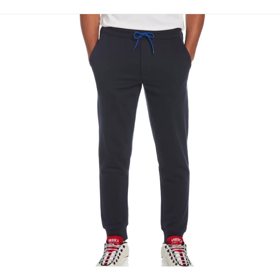 Perry Ellis America Men's Navy Blue Contrast Drawcord Fleeve Sweatpants