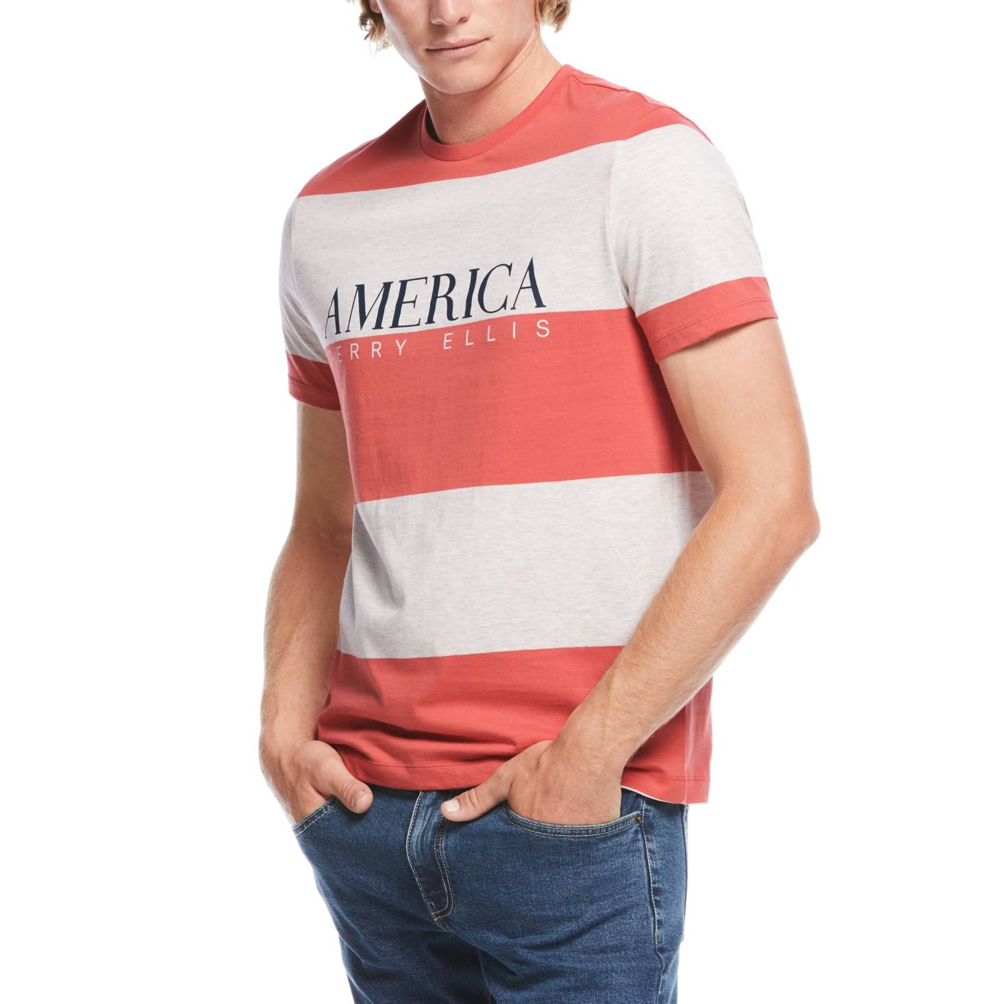 Perry Ellis America Men's Mineral Red & Cream Graphic Tee Shirt