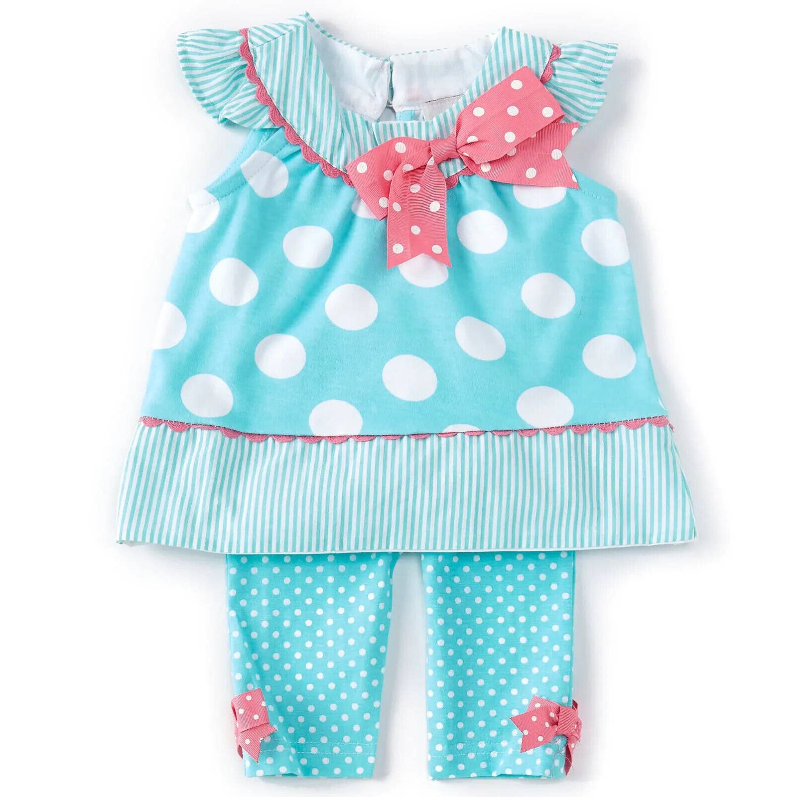 Rare Editions Baby Girls 2 Piece Dot Print Top and Leggings Set