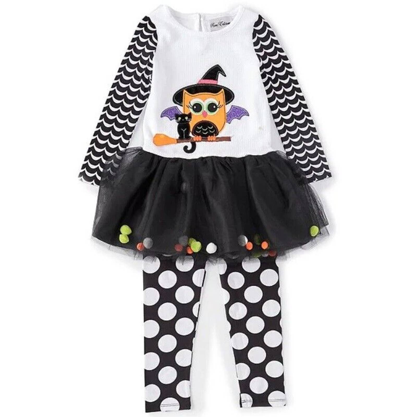 RARE EDITIONS Girl's Halloween Tutu Tunic Legging Set, Owl Witch Applique