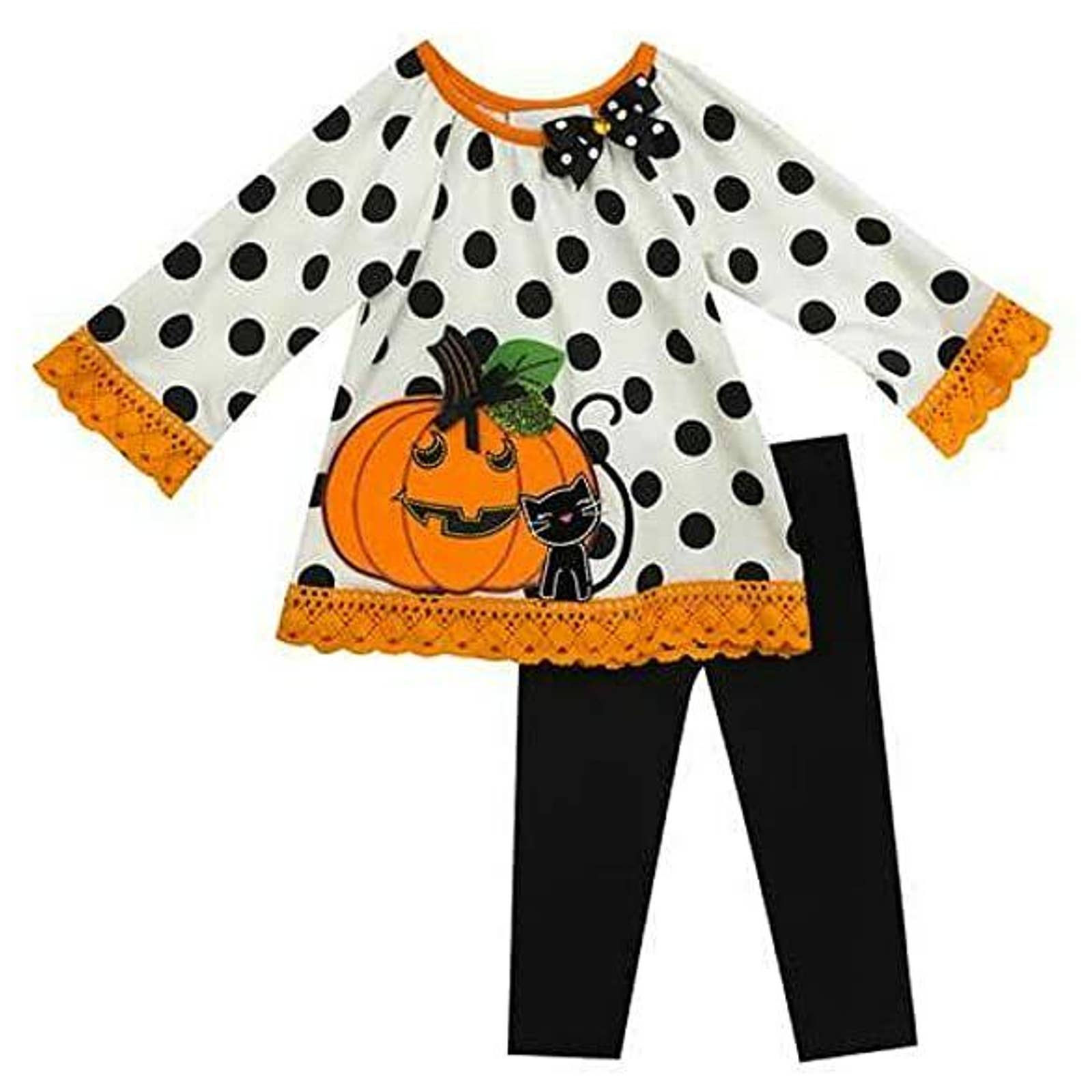 RARE EDITIONS, Polka Dot Pumpkin Dress w/ Black Leggings, Halloween