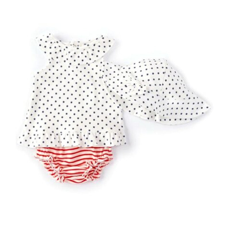 Starting Out 3PC Fourth of July Outfit, Red, White, & Blue Shirt, Bloomers & Hat