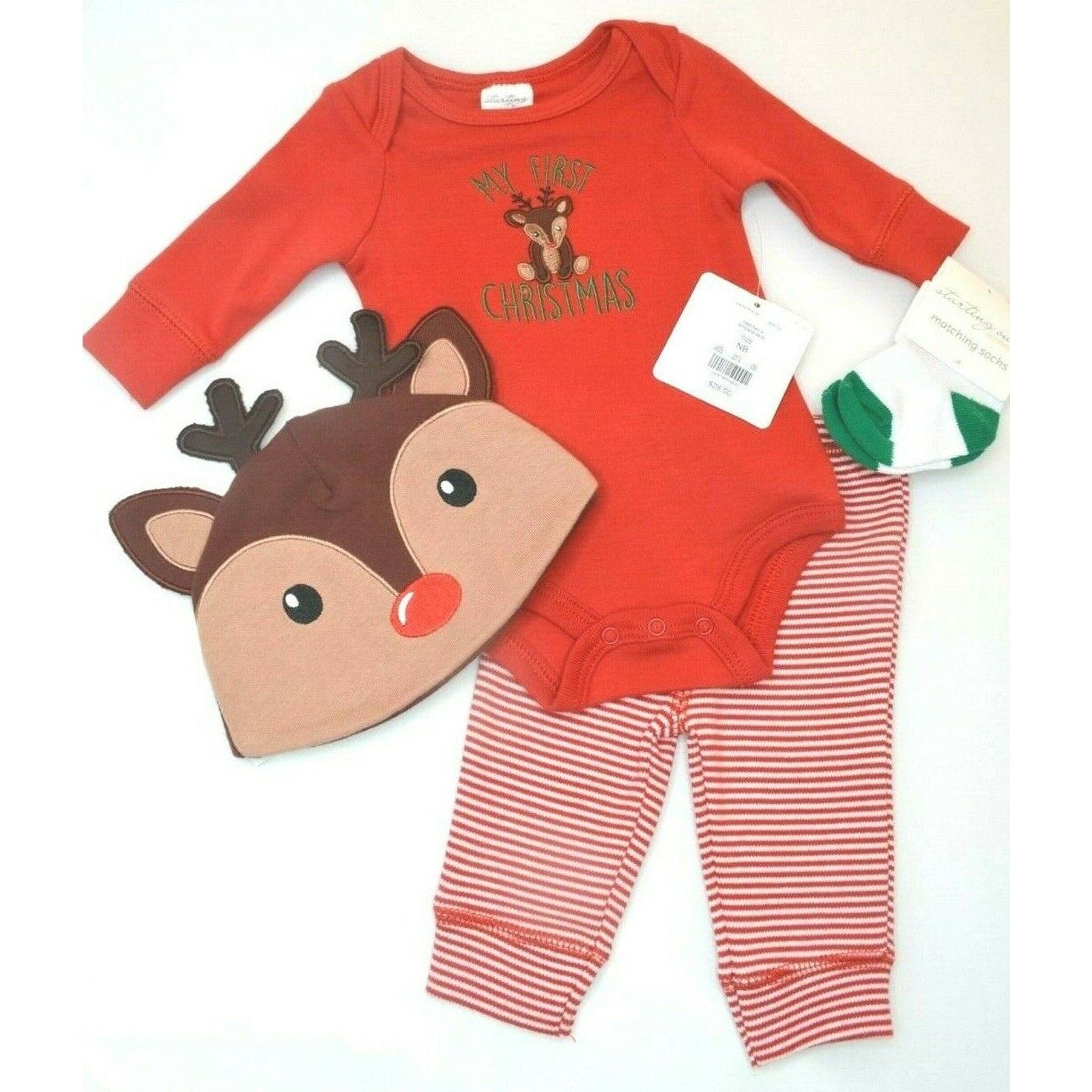 STARTING OUT Baby Boys Bodysuit Pant Hat Sock Set 4 Pc, Christmas Reindeer