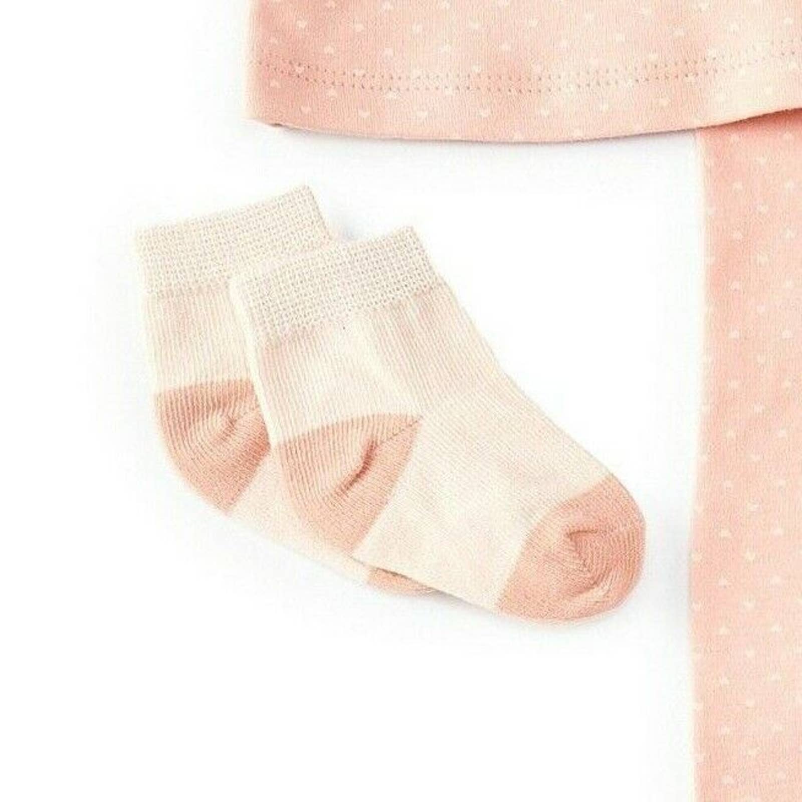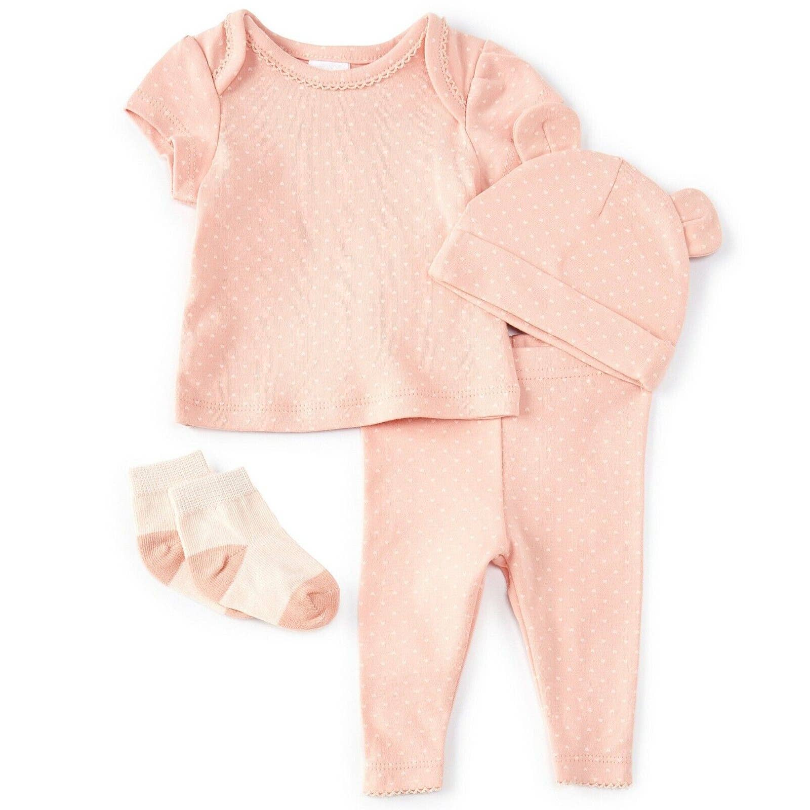 Starting Out Baby Girls Heart-Print Top, Leggings, Socks & Bear Beanie Set