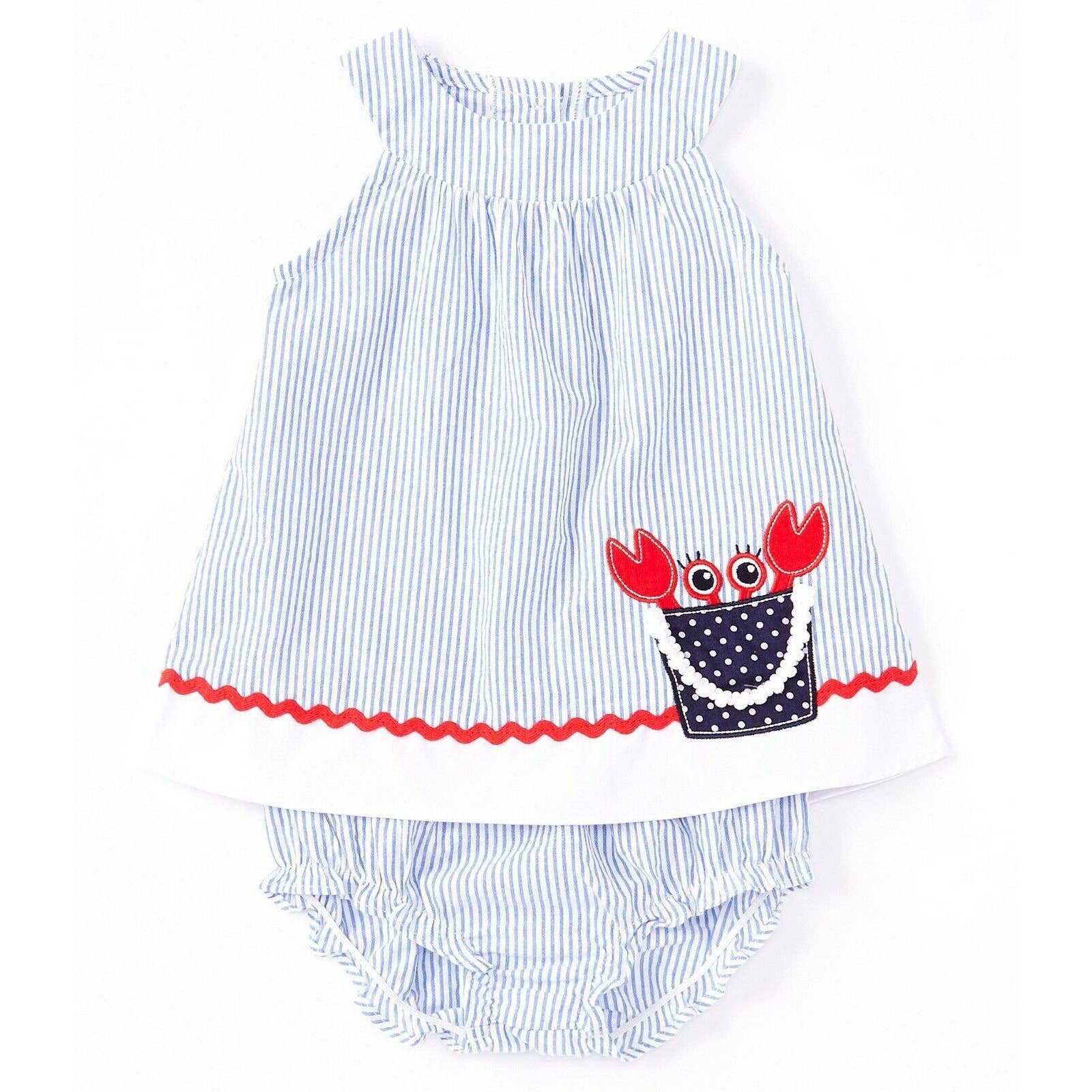 STARTING OUT, Blue & White Striped Lobster Pail Dress w/ Bloomers