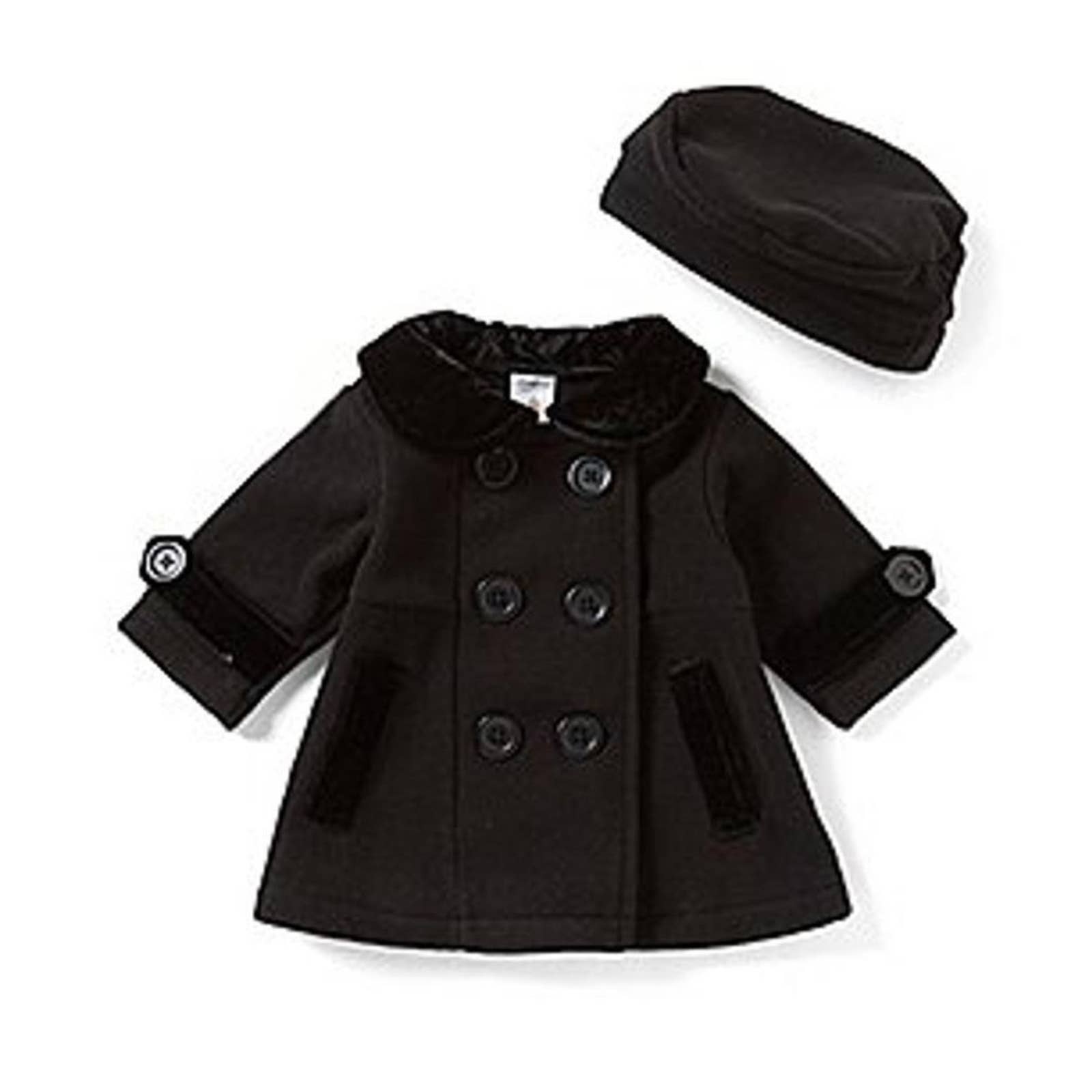 STARTING OUT Fleece Pea Coat and Matching Hat, Black