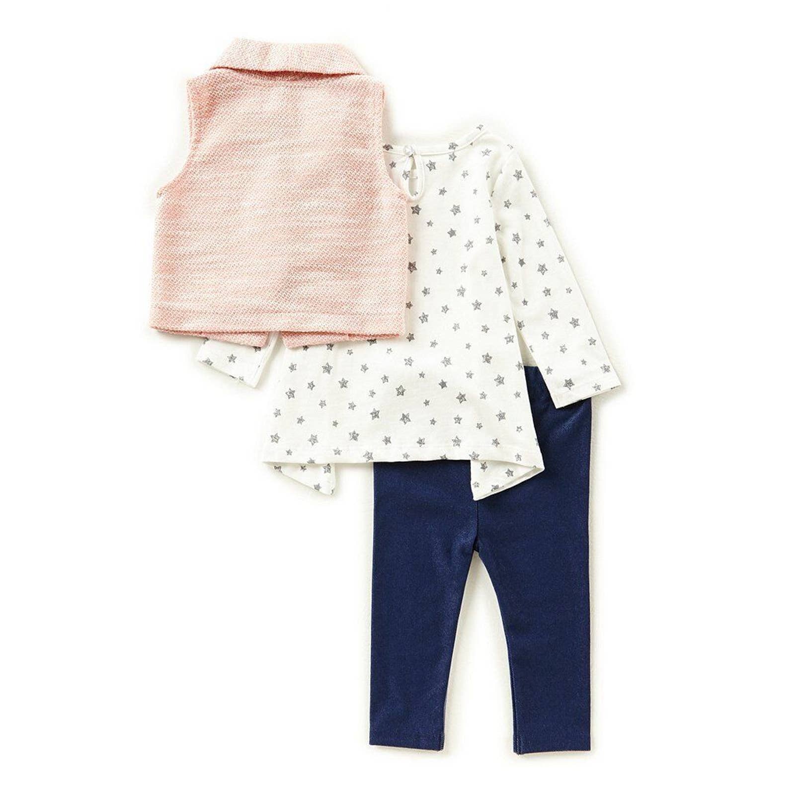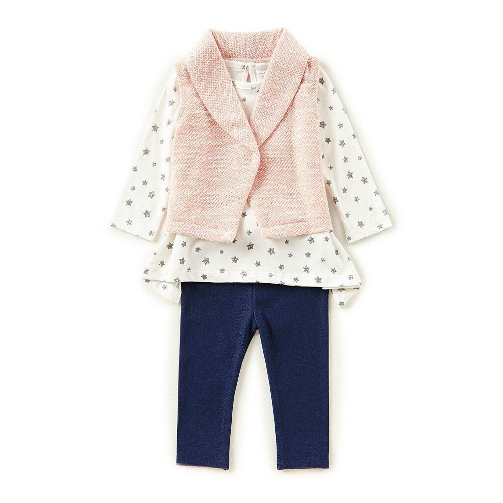 STARTING OUT Girls 3 PC Set Pants Set Star Print Top, Leggings & Vest